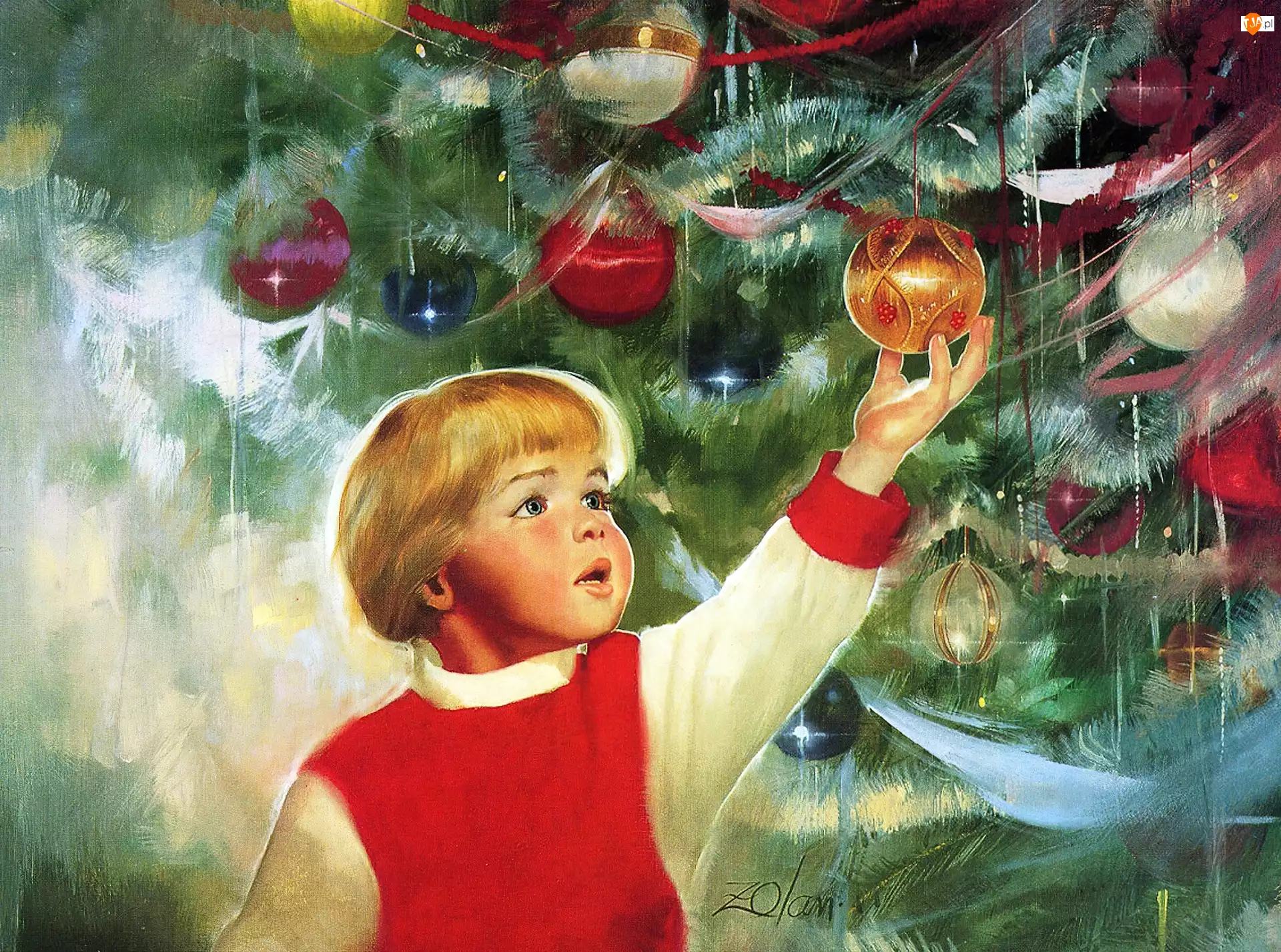 Bombki, Obraz, Dziecko, Donald Zolan, Choinka