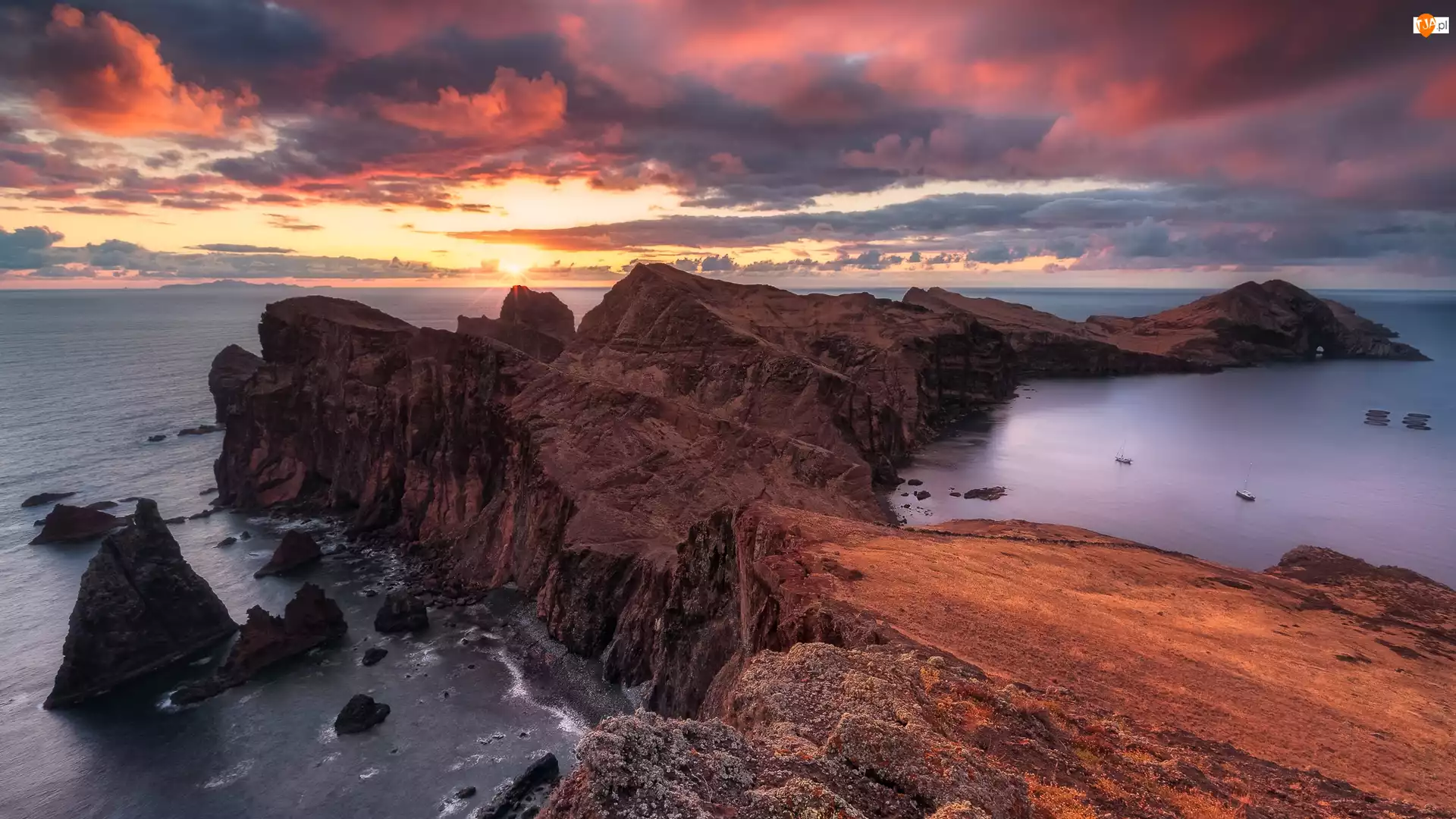 Bonifacio, Morze, Zachód słońca, Korsyka, Skały, Chmury, Francja, Przylądek Pertusato