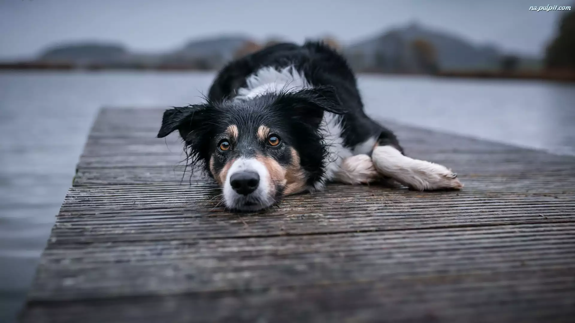 Border collie leżący na kładce