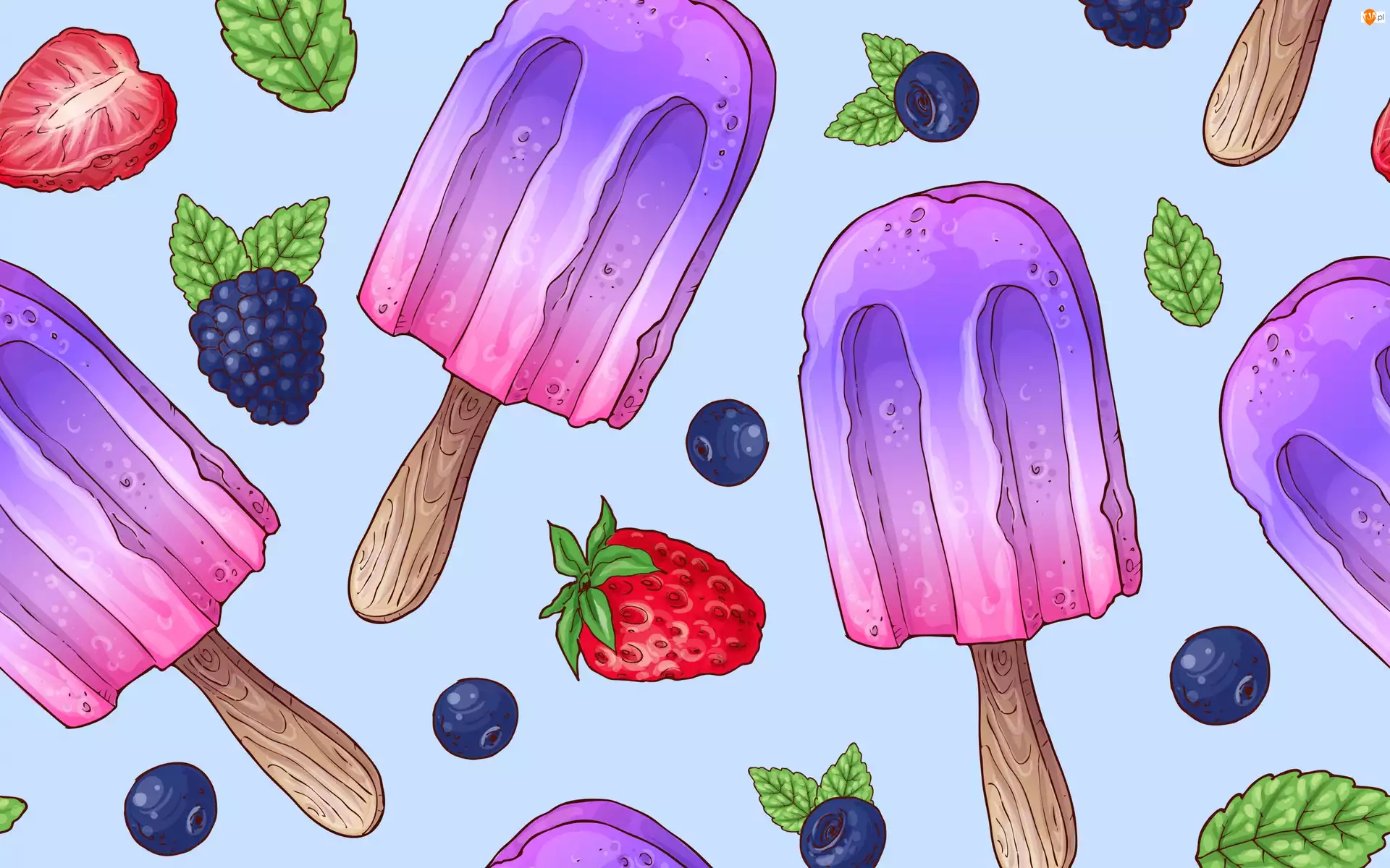 Borówki, Grafika, Lody, Truskawki
