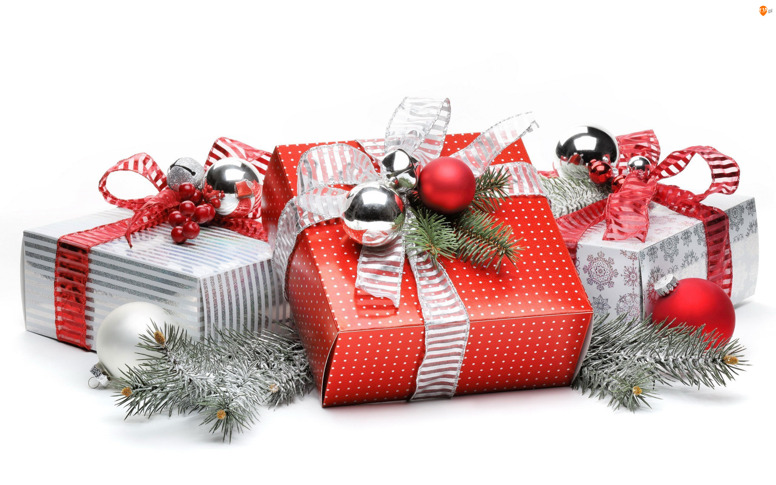 Boże Narodzenie, Bombki, Prezenty, Gałązki