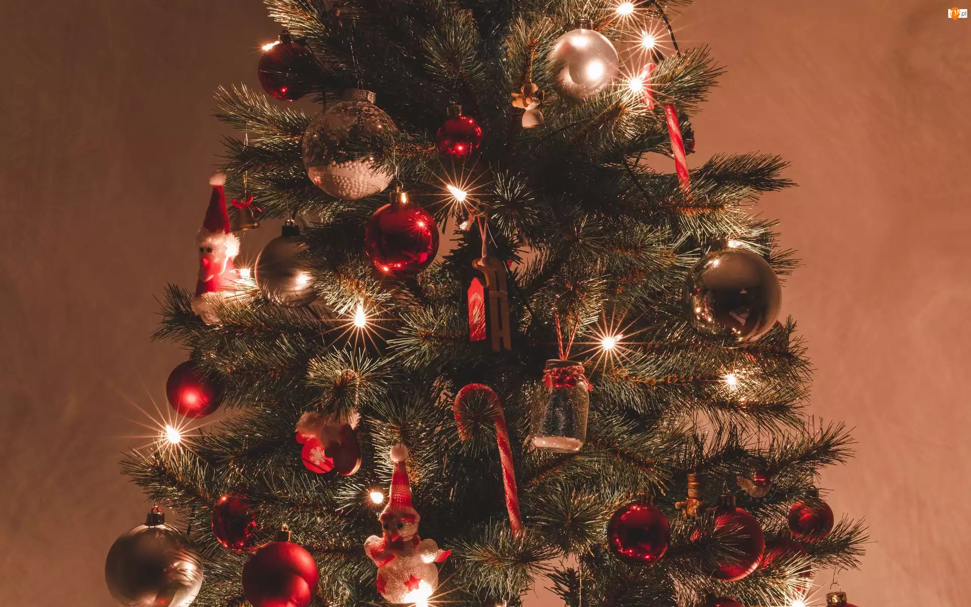 Skrzynie, Choinka, Boże Narodzenie, Oświetlone