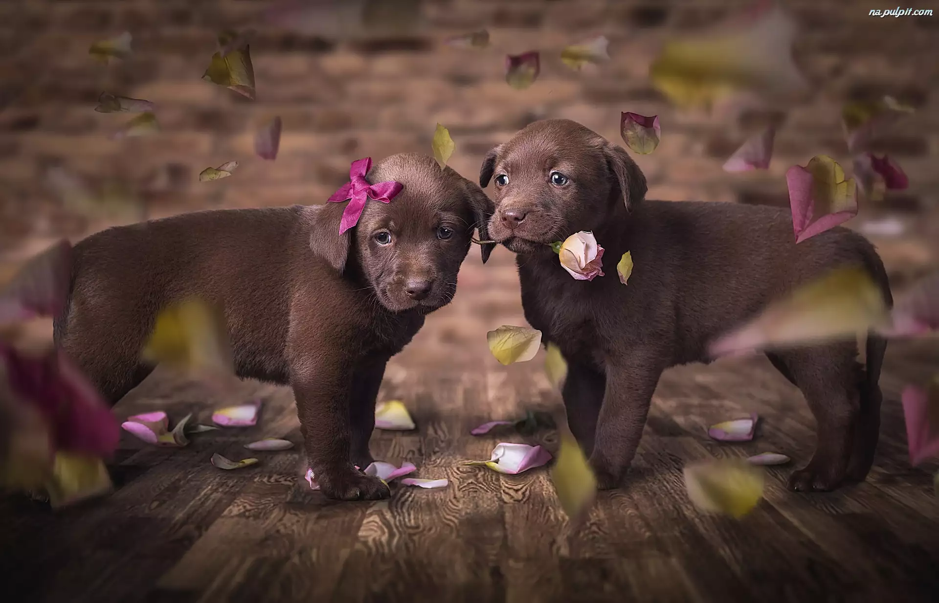 Brązowe, Labradory retriever, Dwa, Psy, Szczeniaki