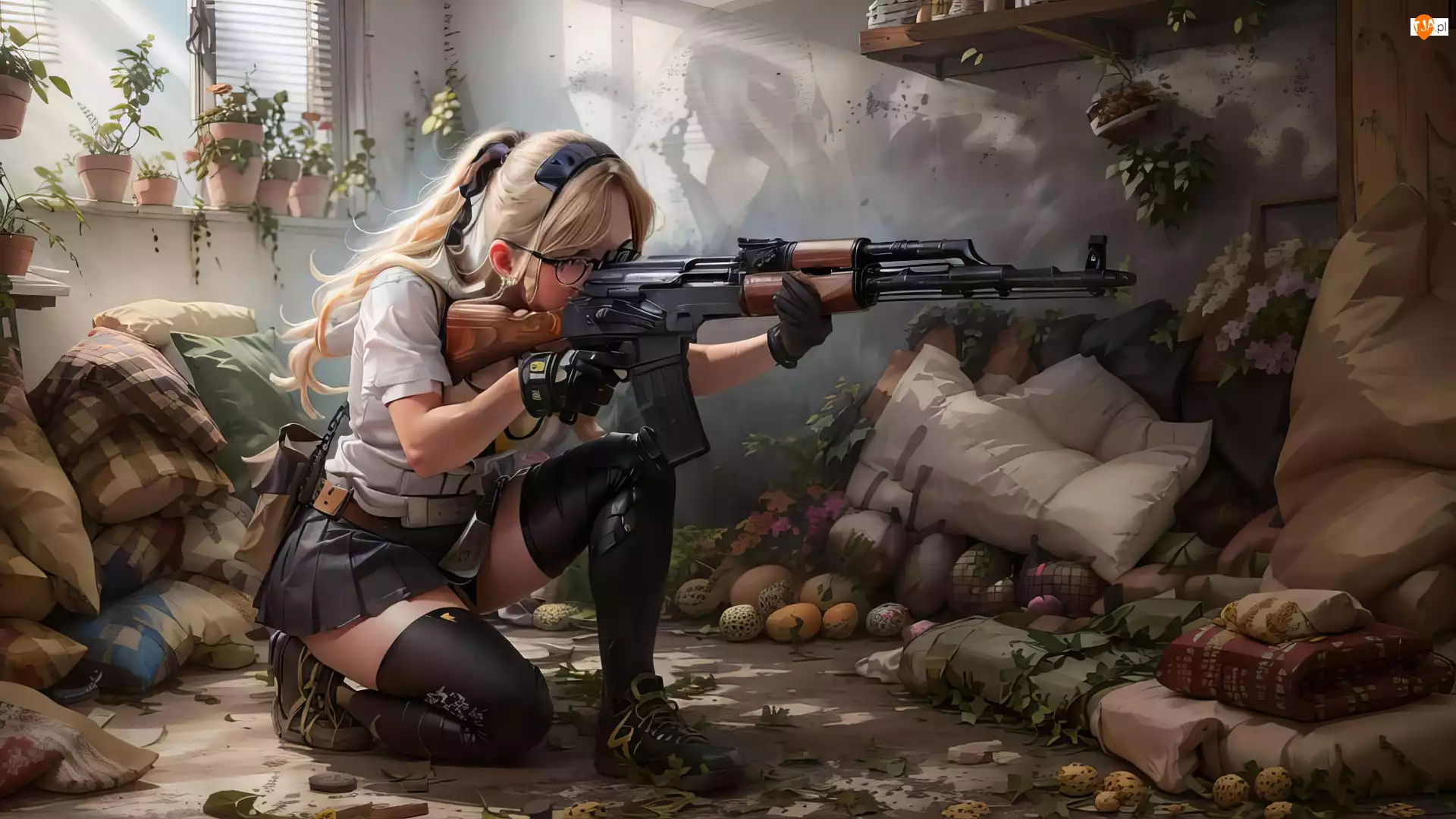 Broń, Grafika, Blondynka, Dziewczyna, Karabin