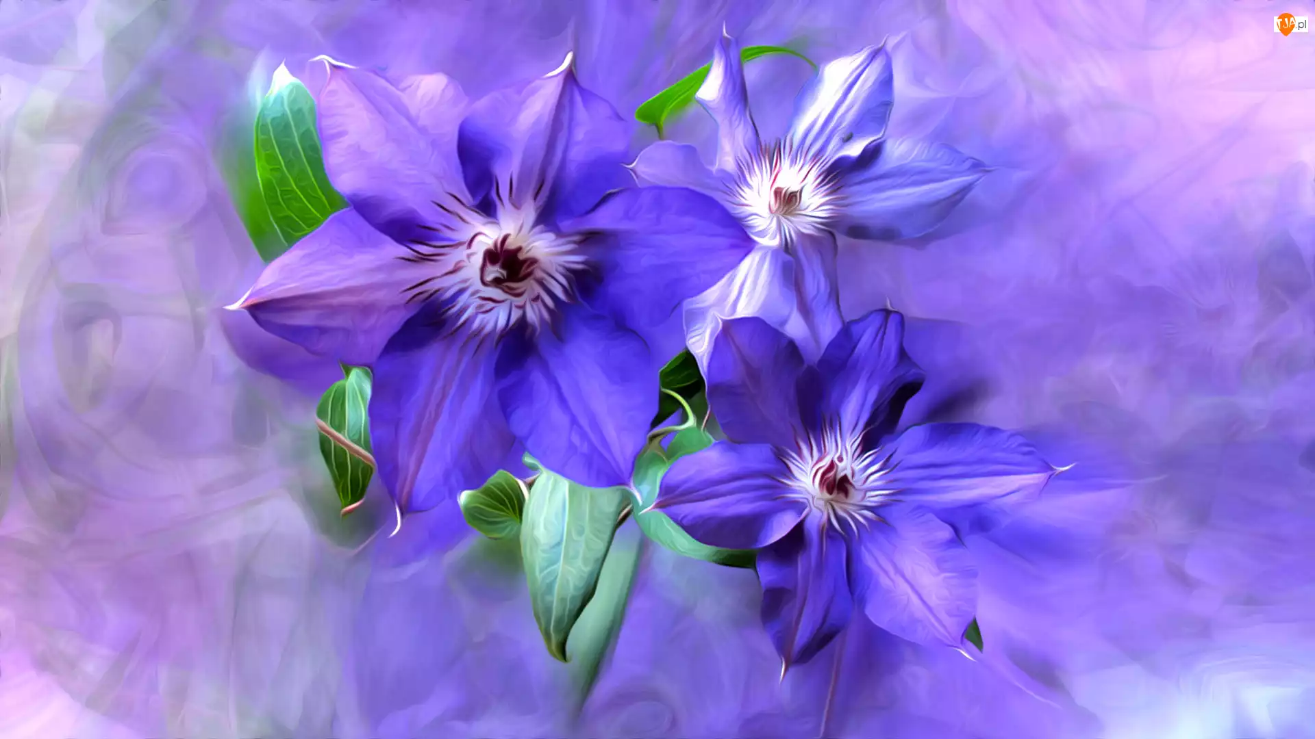 Grafika, Kwiaty, Niebieskie, Powojnik