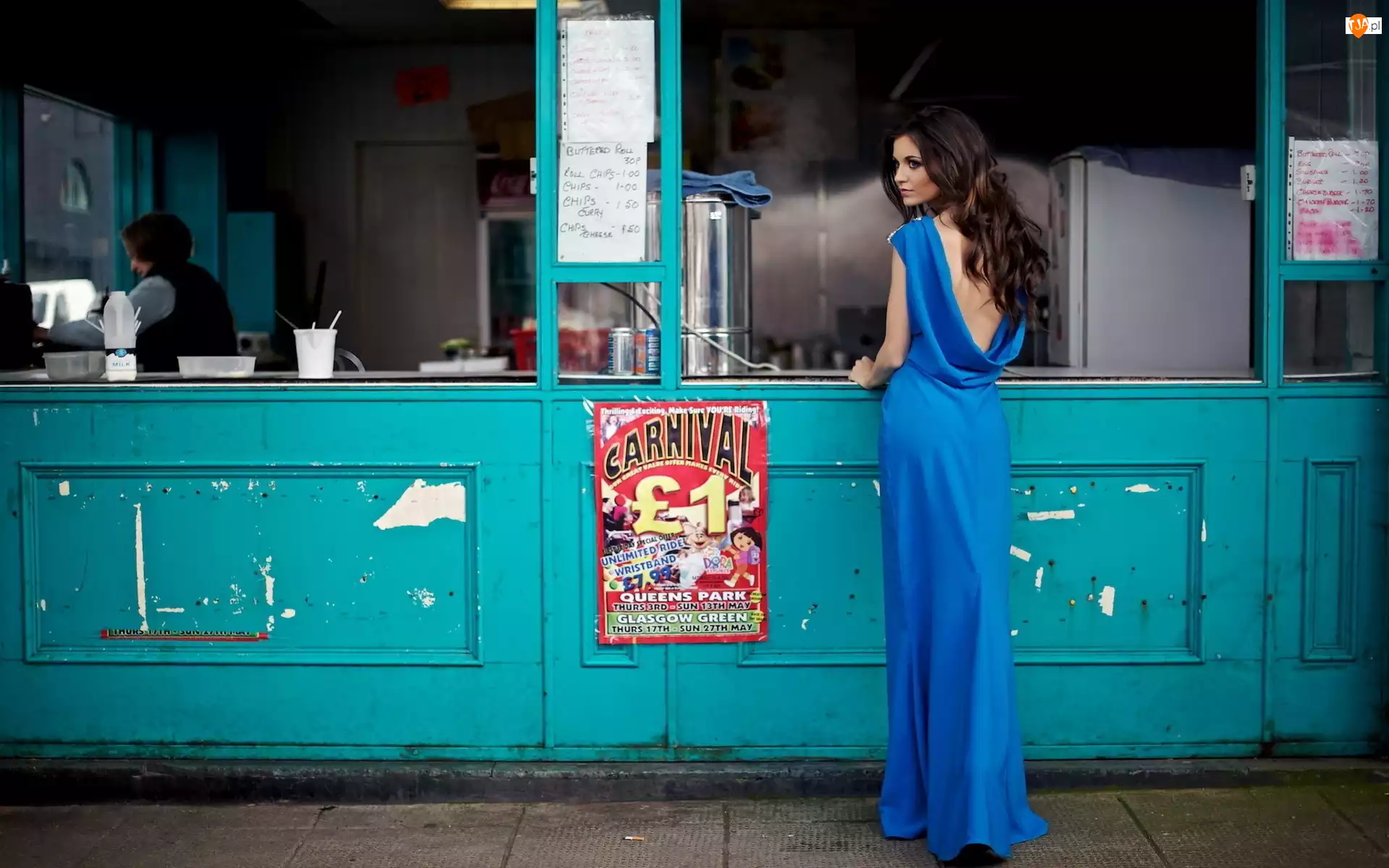 Brunetka, Bar, Kobieta, Ulica, Modelka, Długa Sukienka