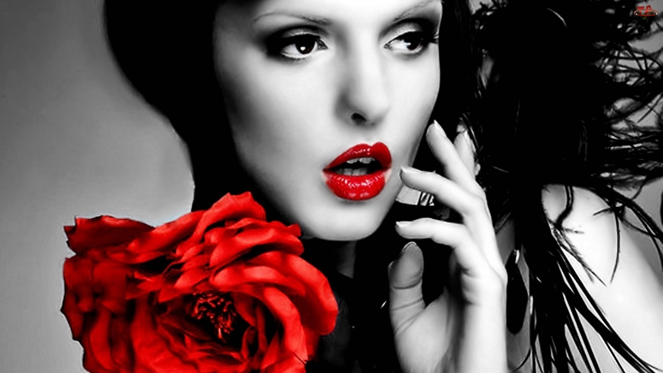 Brunetka, Spojrzenie, Czerwone, Usta