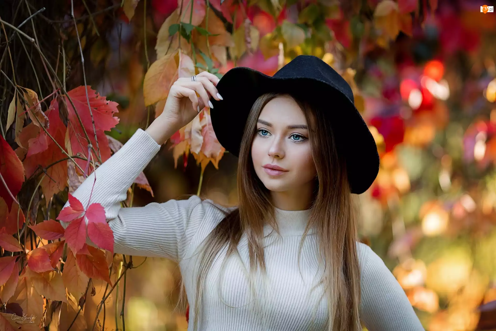 Szatynka, Modelka, Dzika winorośl, Kobieta, Pnącza, Kapelusz, Polina Kostyuk