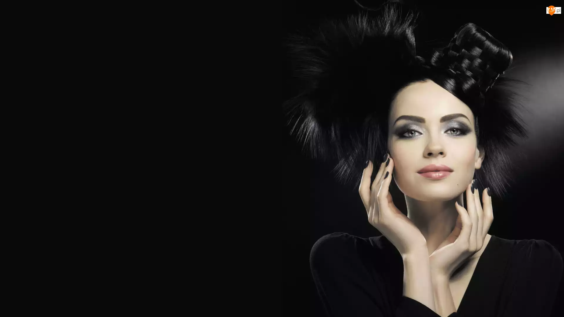 Brunetka z rękami przy twarzy