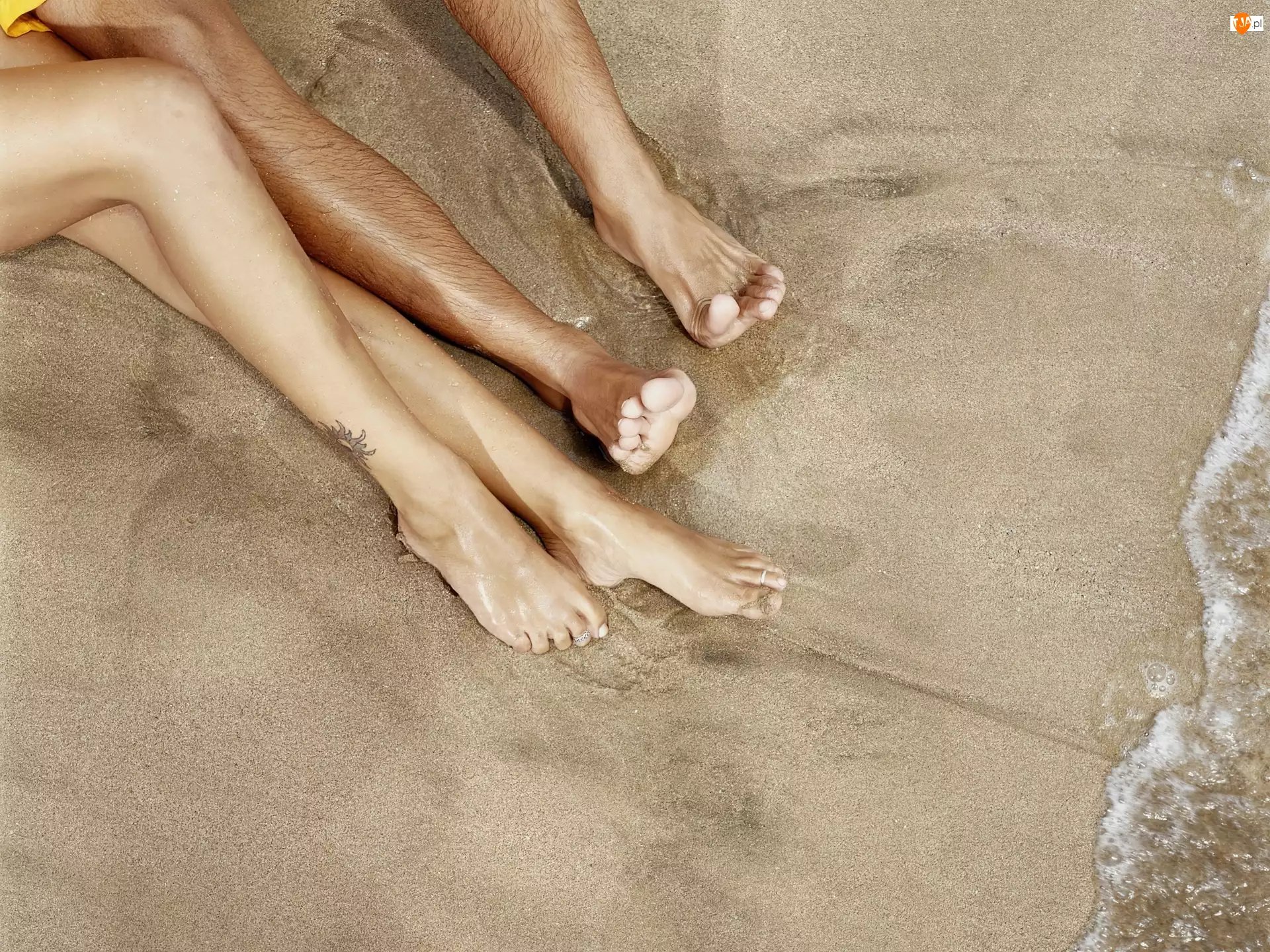 Brzeg, Nogi, Mężczyzna, Kobieta, Piasek
