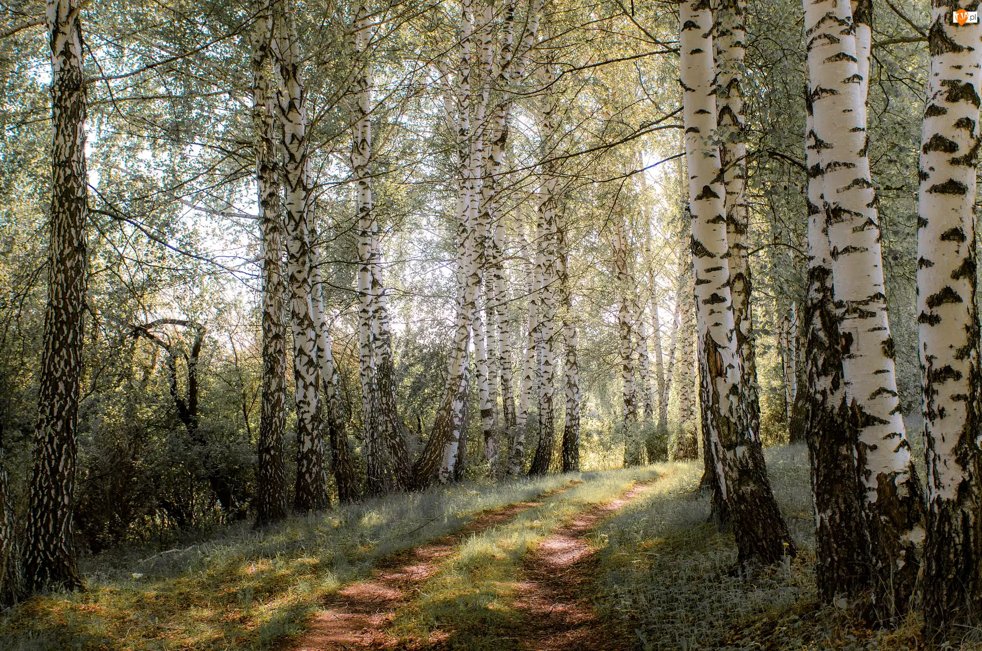 Brzozy przy ścieżce w porannym słońcu