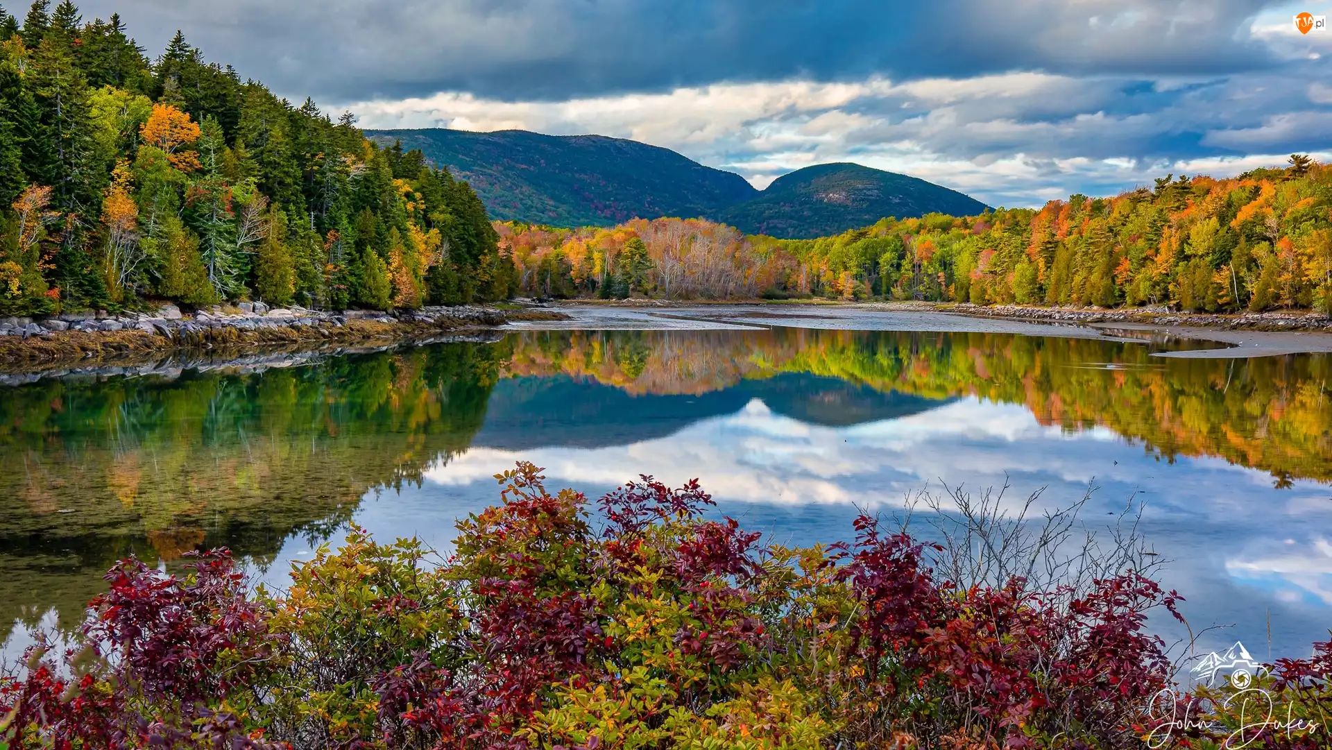 Bubble Mountains, Stan Maine, Góry, Lasy, Roślinność, Park Narodowy Acadia, Jezioro, Stany Zjednoczone, Jordan Pond