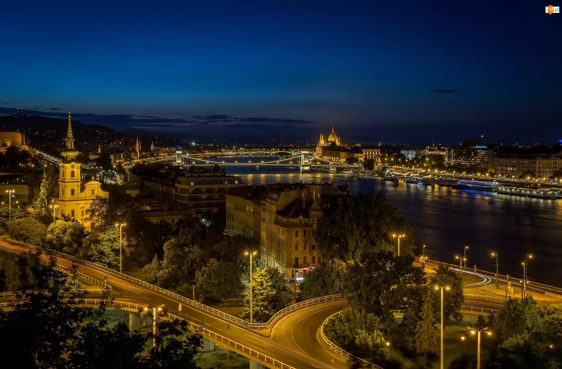 Budapeszt, Domy, Nocą, Miasto, Węgry, Rzeka, Mos