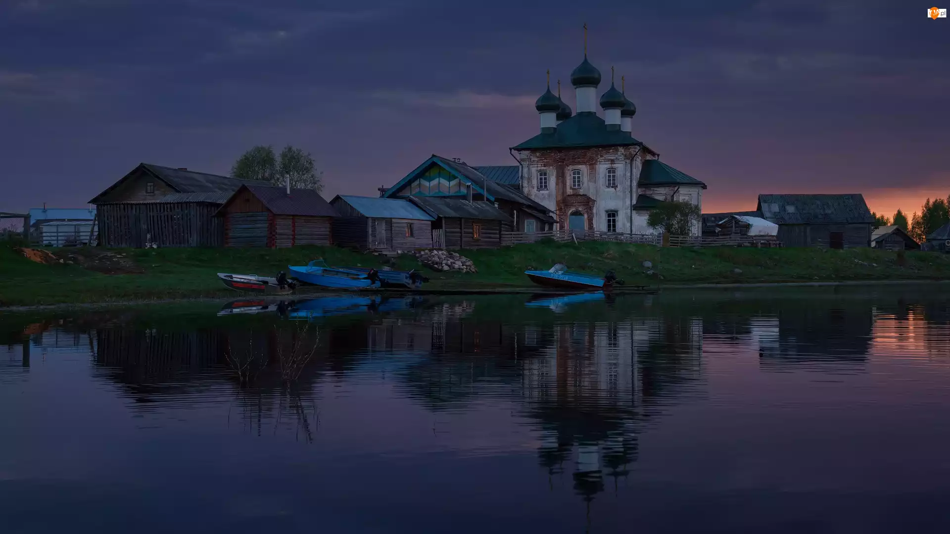 Budynki, Rosja, Kenozero, Cerkiew, Obwód Archangielski, Rzeka, Wieczór, Miejscowość