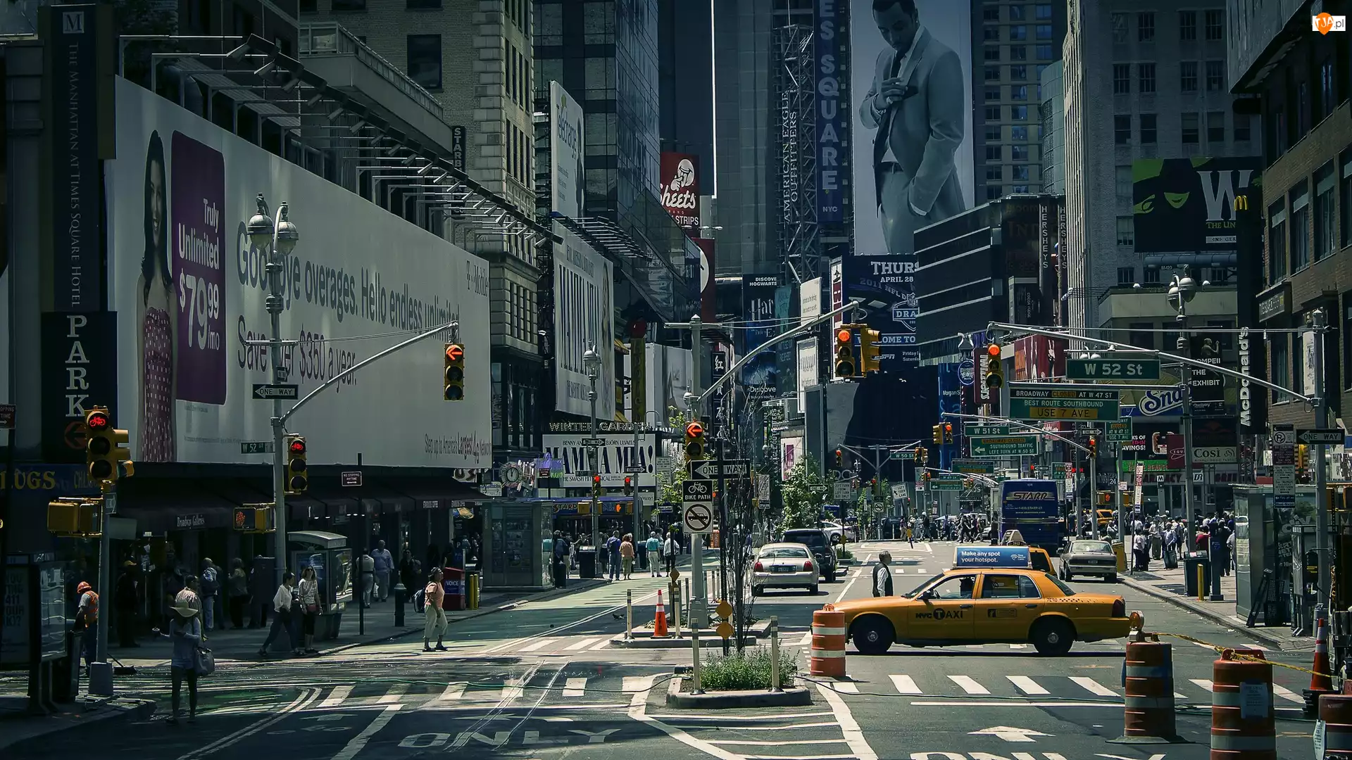 Budynki, Stany Zjednoczone, Ulica, Nowy Jork, Samochody