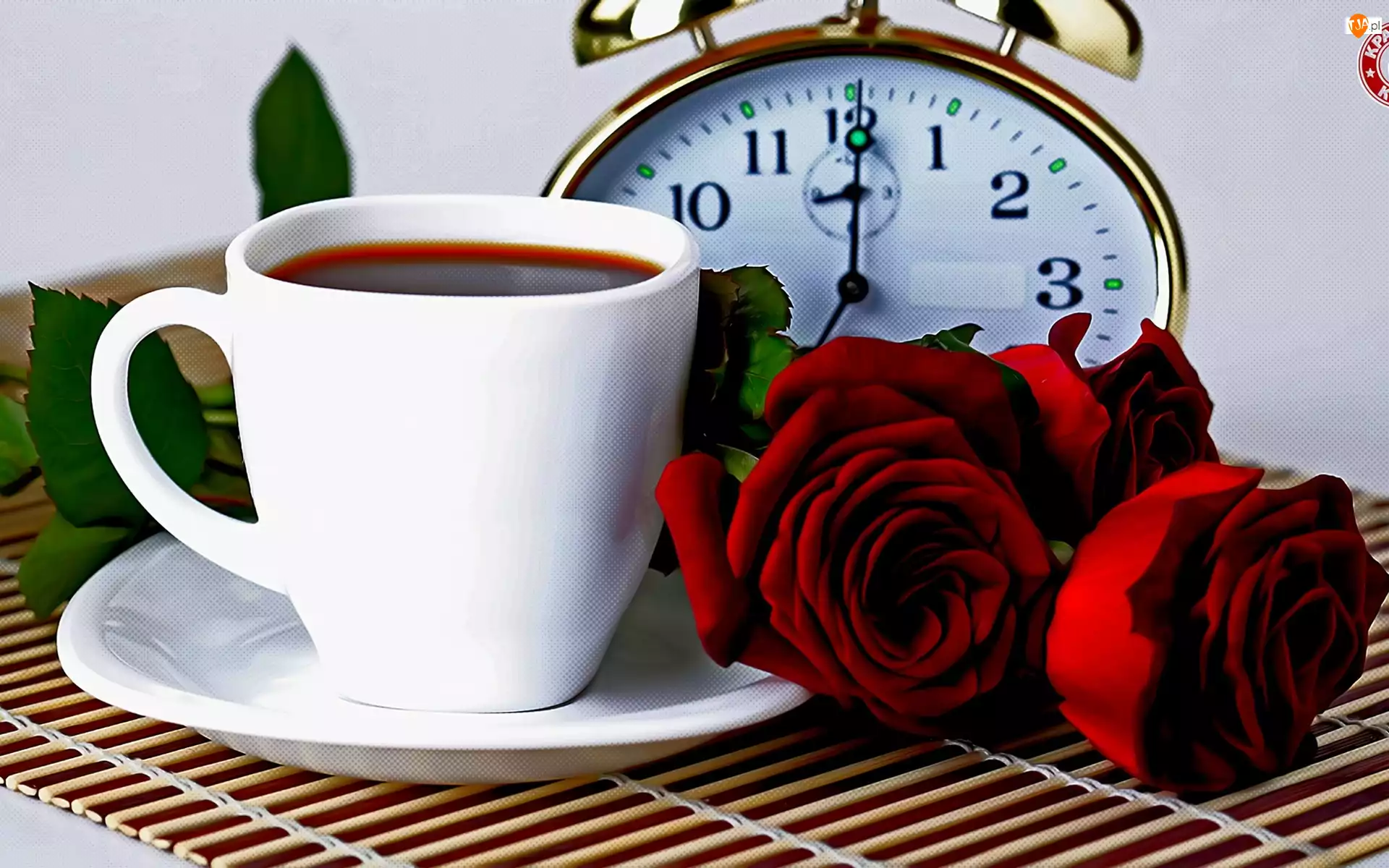Budzik, Róże, Filiżanka, Czerwone