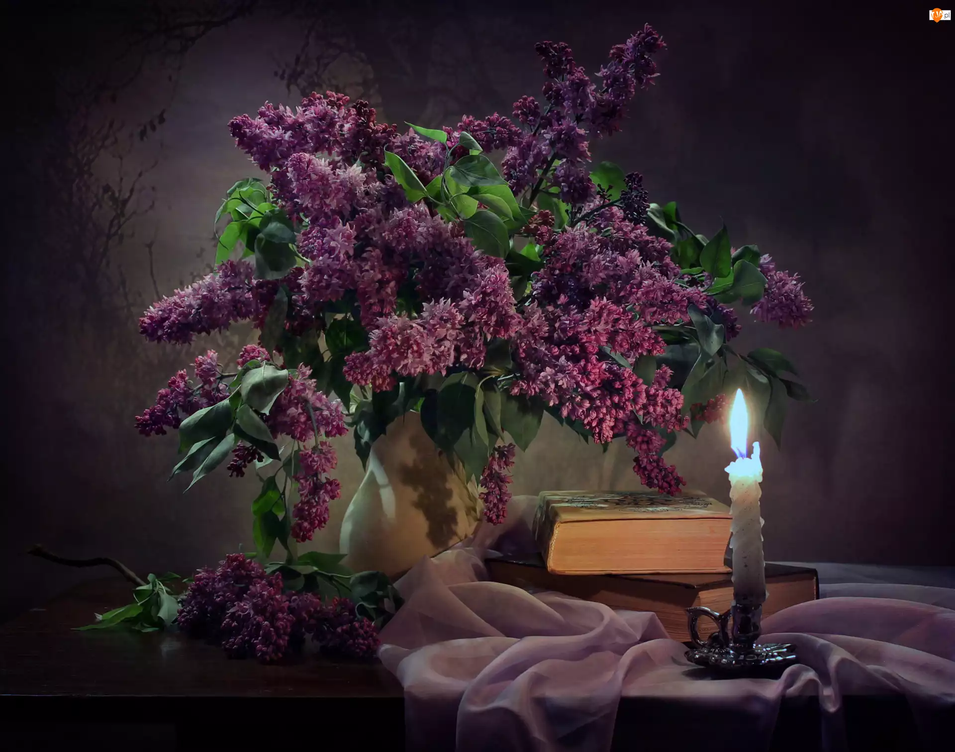 Bez, Świeca, Kwiaty, Lilak, Książki