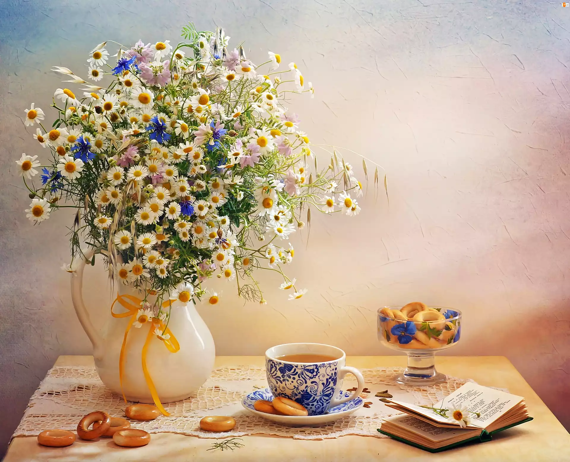 Bukiet, Ciasteczka, Kwiatów, Herbata
