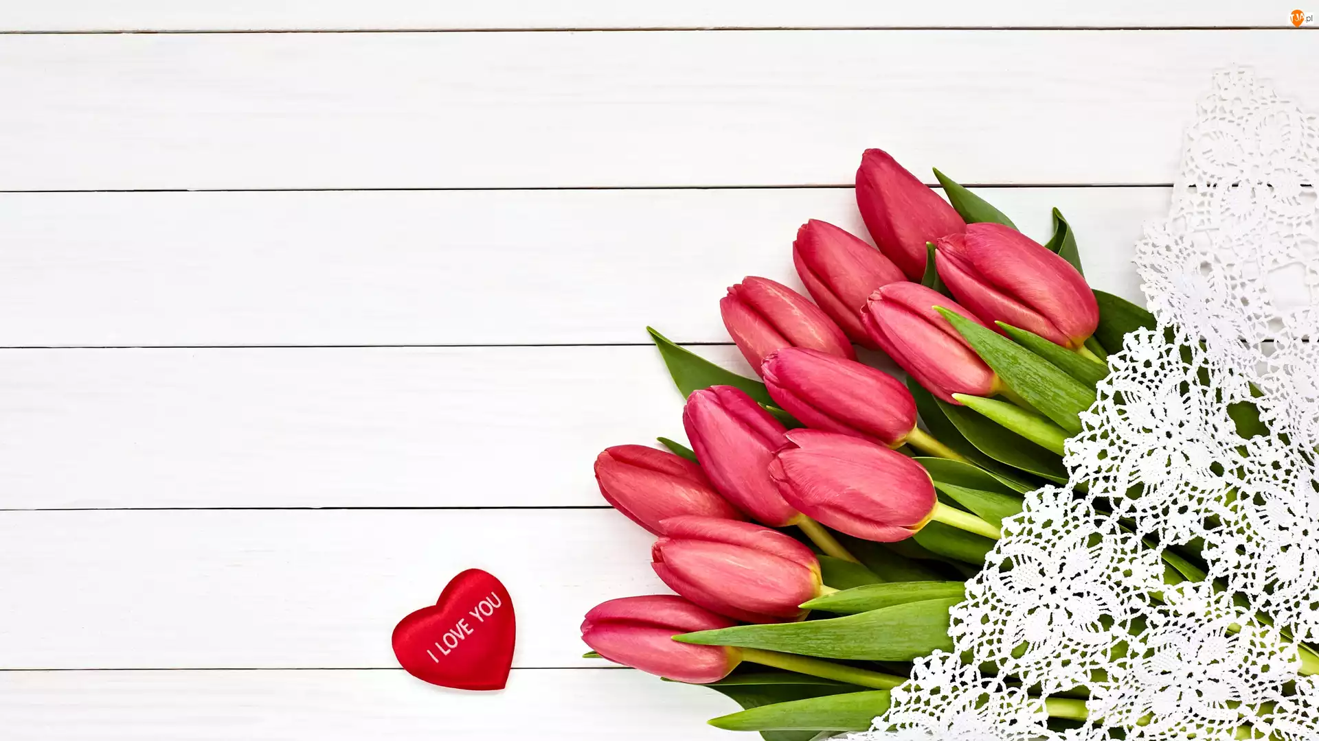 Tulipany, Deski, Serduszko, Czerwone, Serwetka