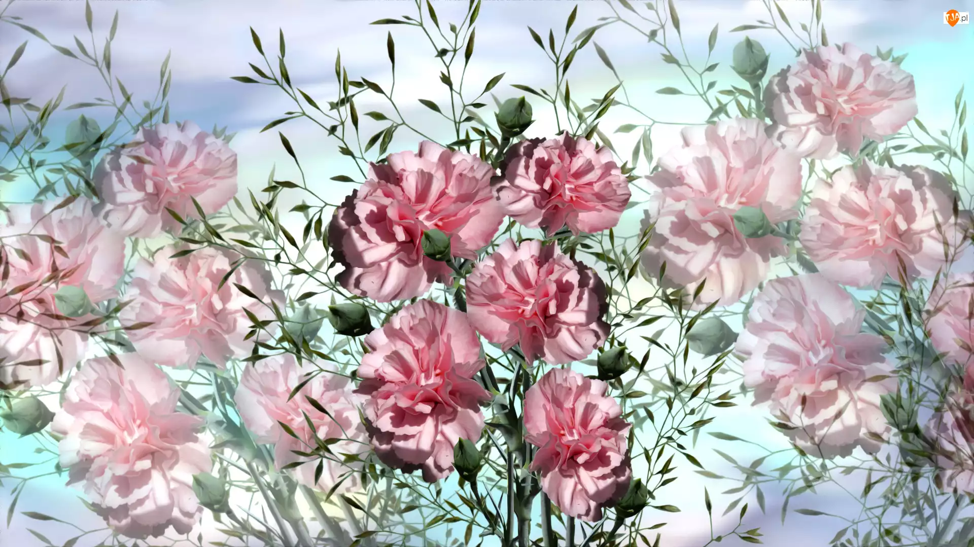 Grafika, Kwiaty, Goździki