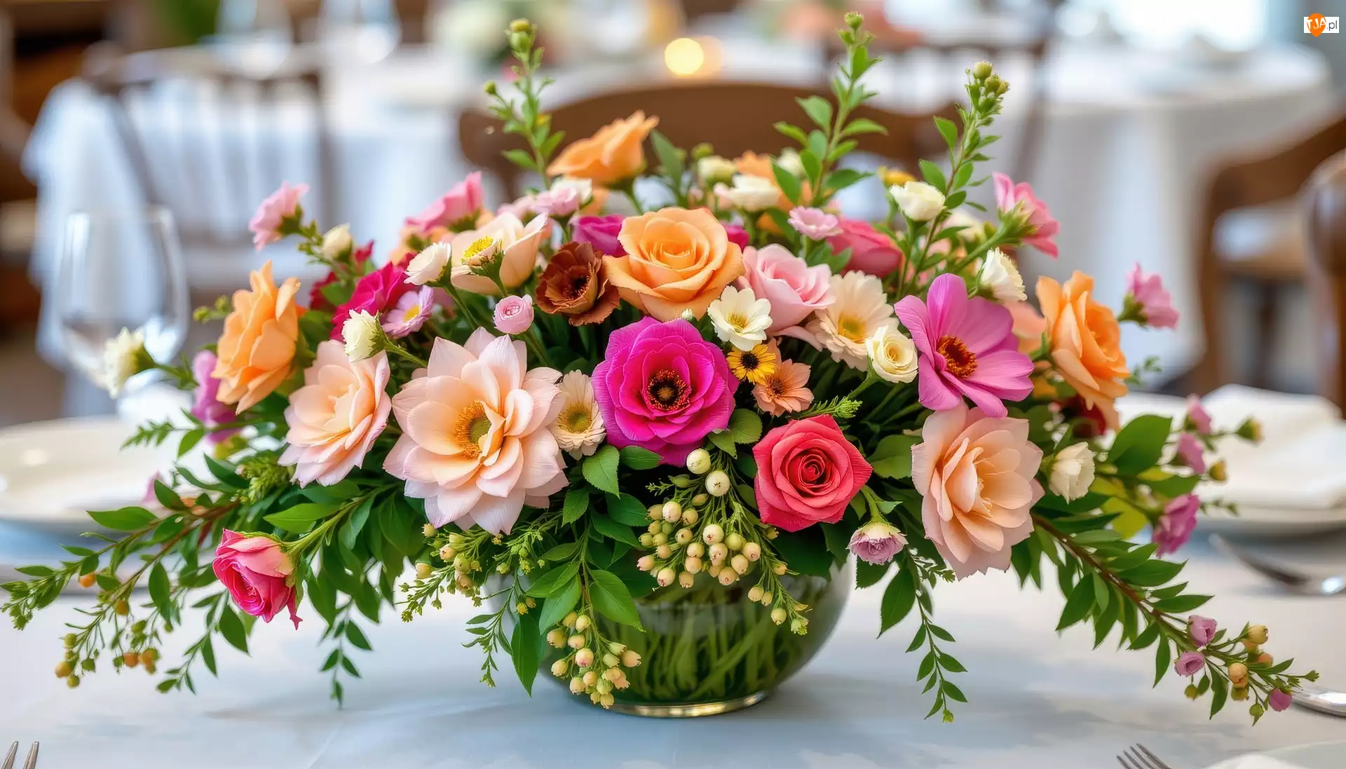 Bukiet, Grafika AI, Kwiaty, Kolorowe, Stół