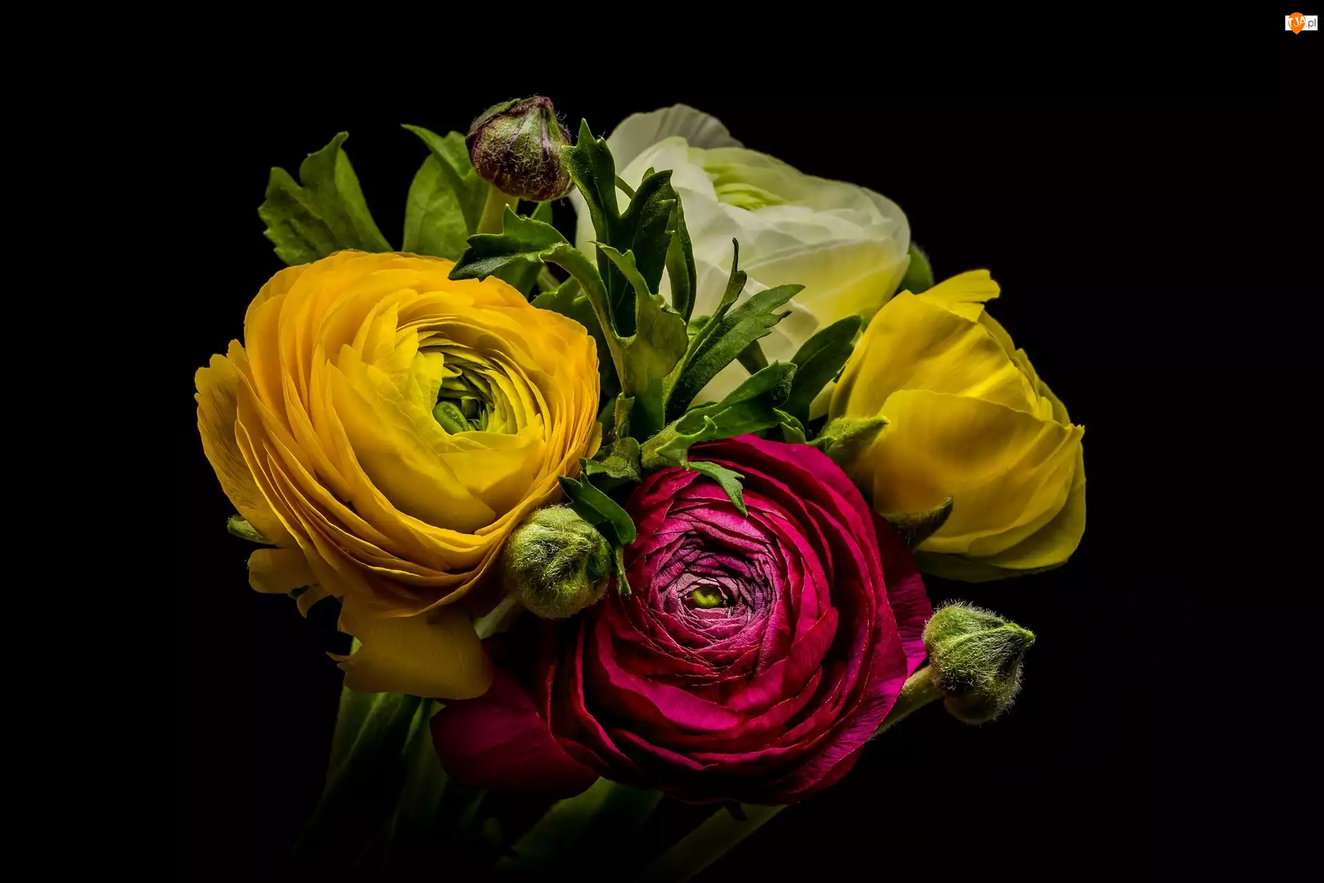 Ciemne tło, Bukiet, Kwiaty, Jaskry