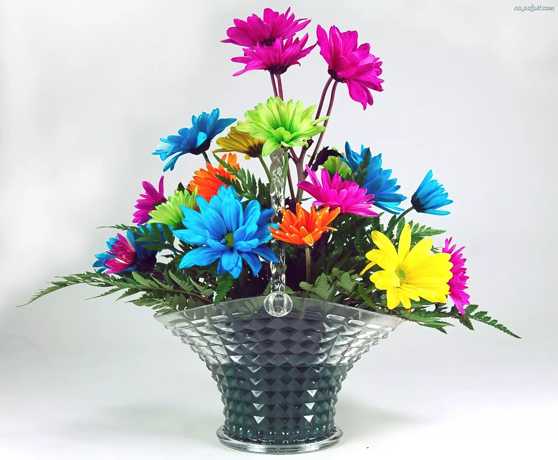 Bukiet, Kolorowe, Szklany, Kwiaty, Koszyk