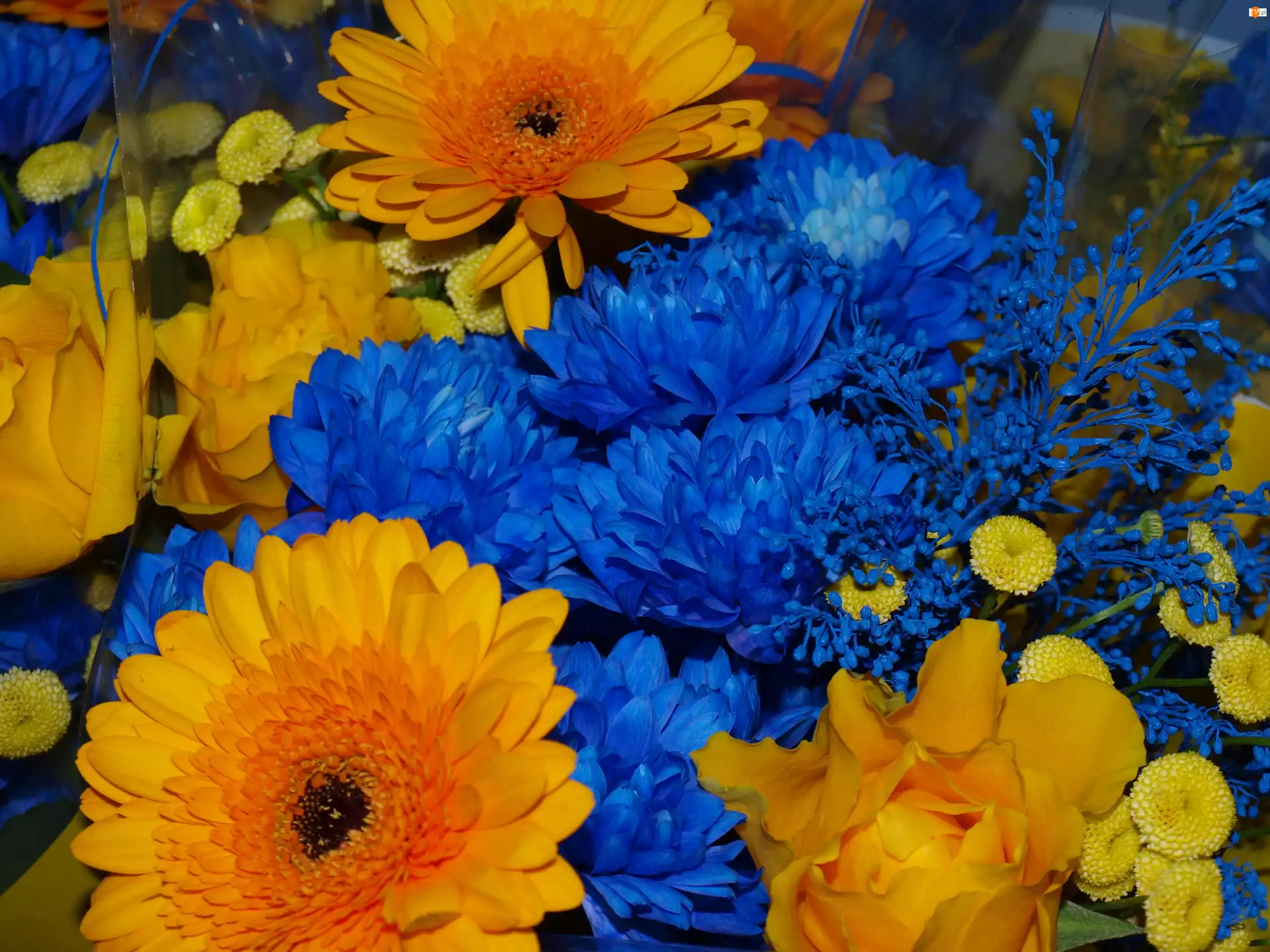 Bukiet, Kwiatów, Niebiesko, Żółtych