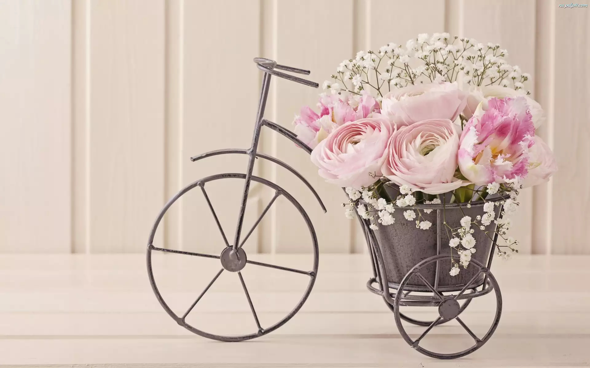 Bukiet, Rowerek, Kwiatów, Doniczka