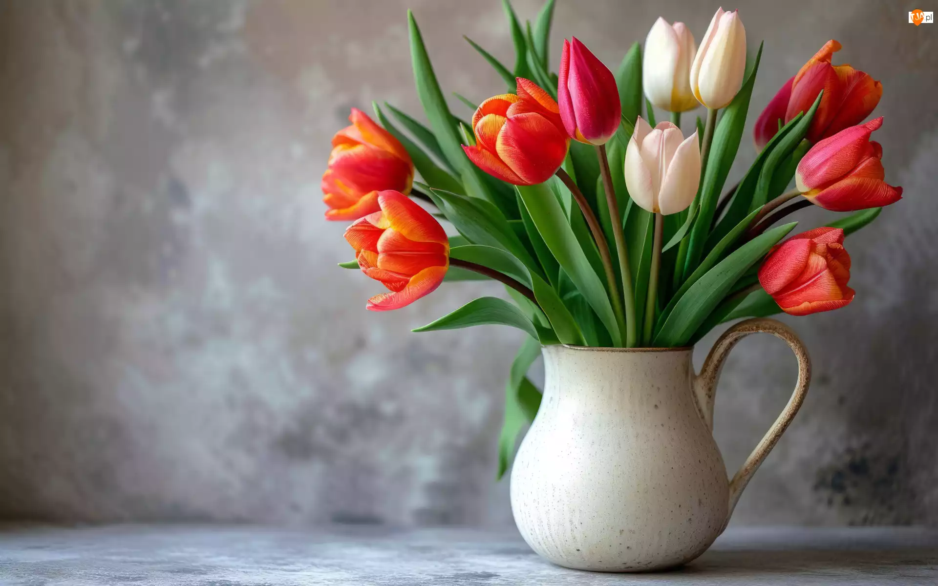 Bukiet, Tło, Tulipany, Kwiaty, Dzbanek