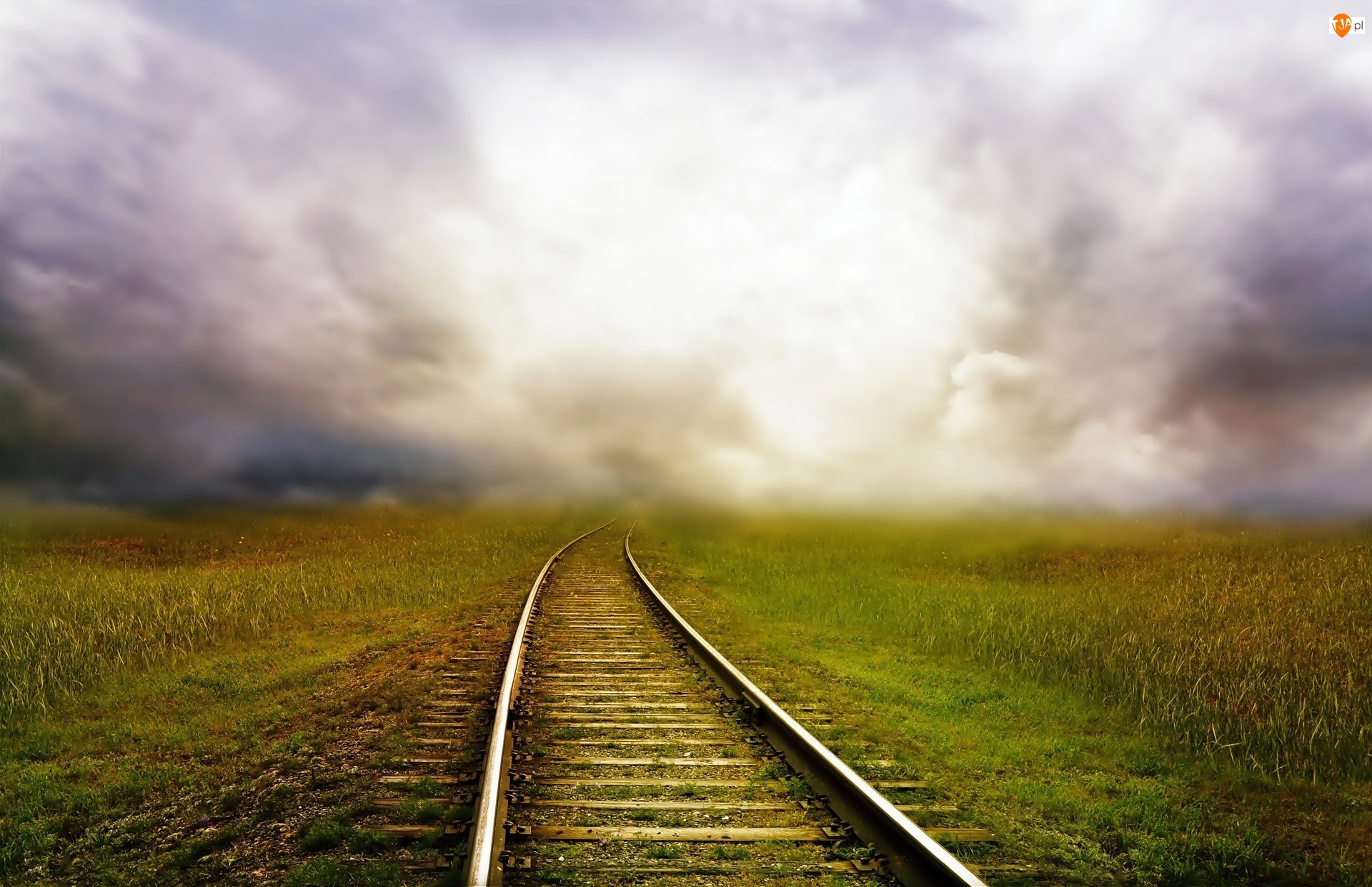 Kolejowe, Tory, Chmury, Trawa, Burzowe, Łąka