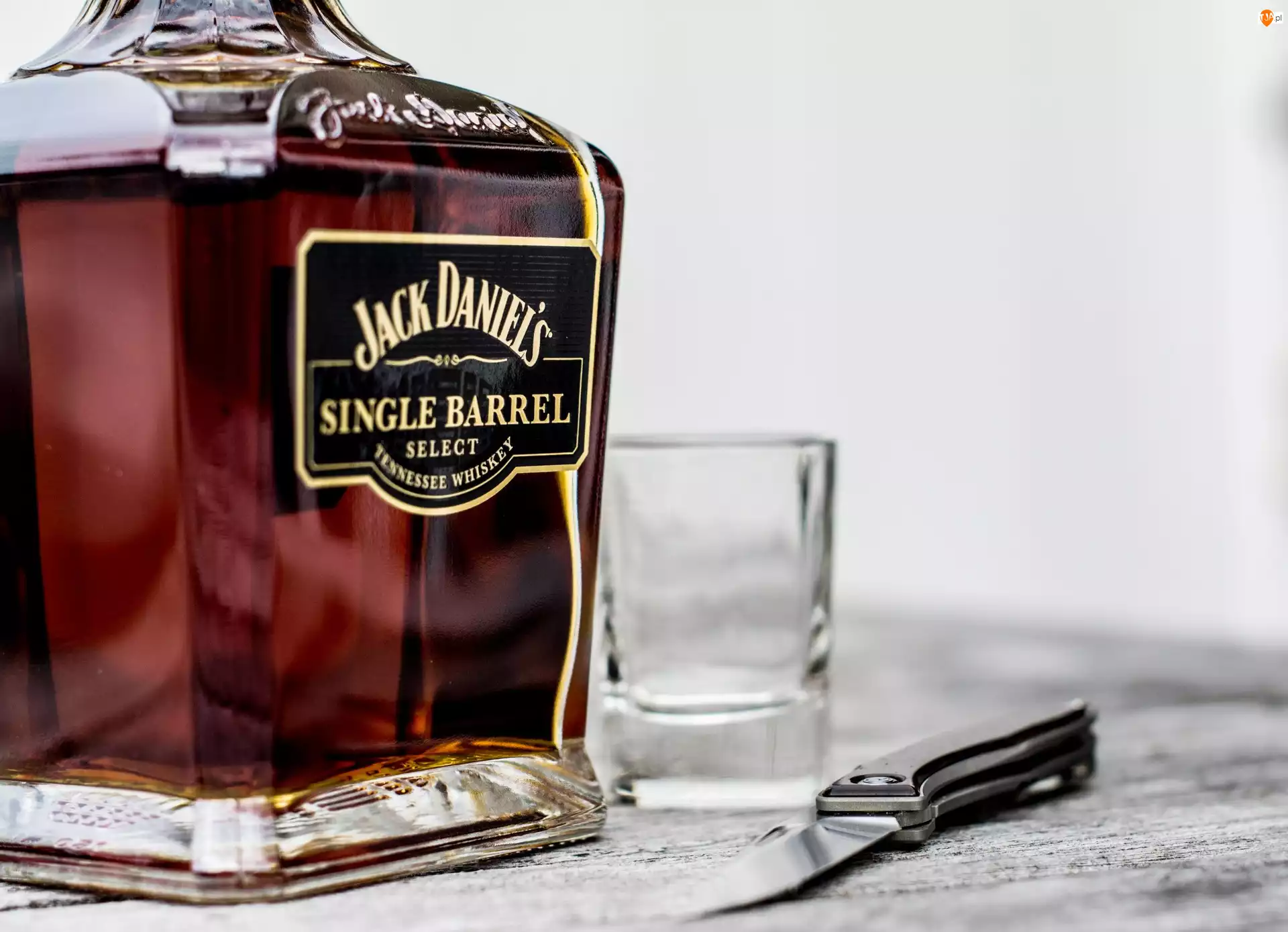 Nóż, Butelka, Jack Daniels, Whisky, Szklanka