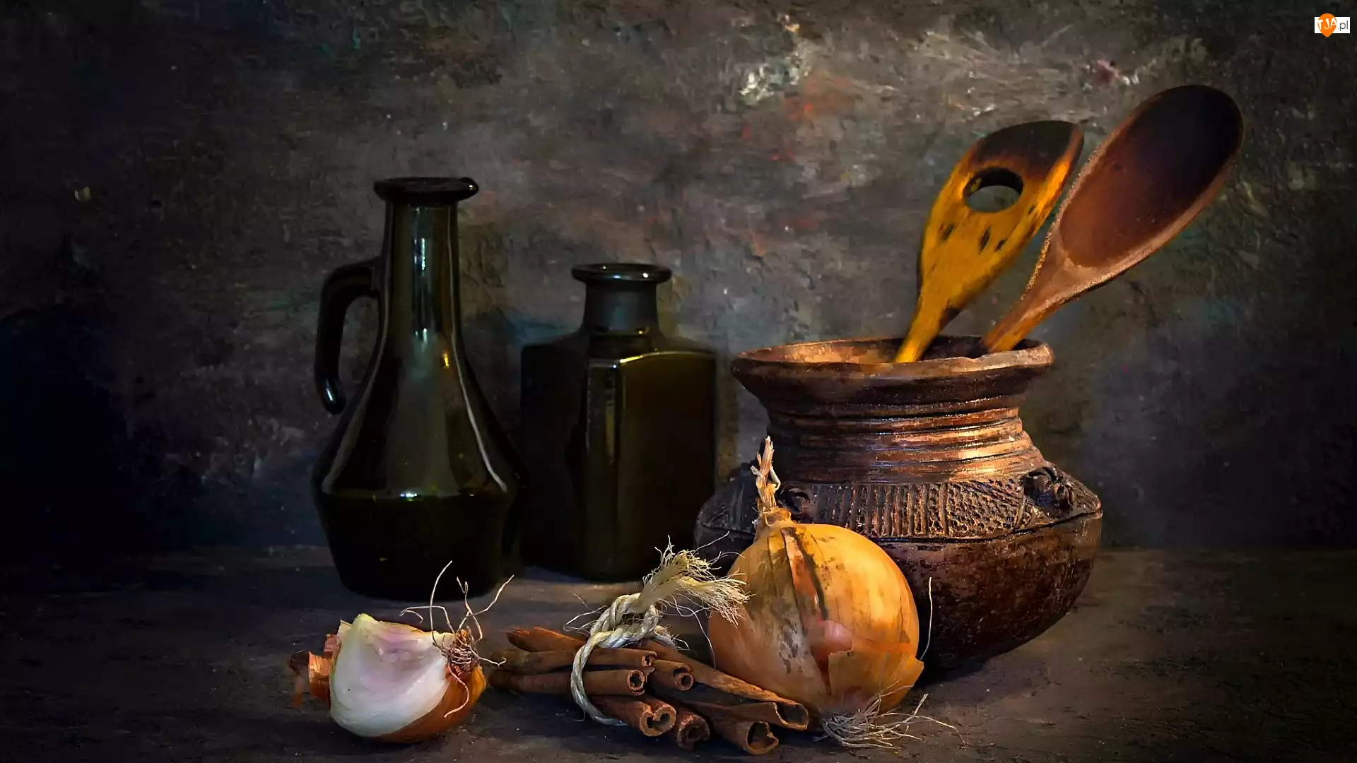 Butelki, Cebula, Drewniane, Czosnek, Łyżki