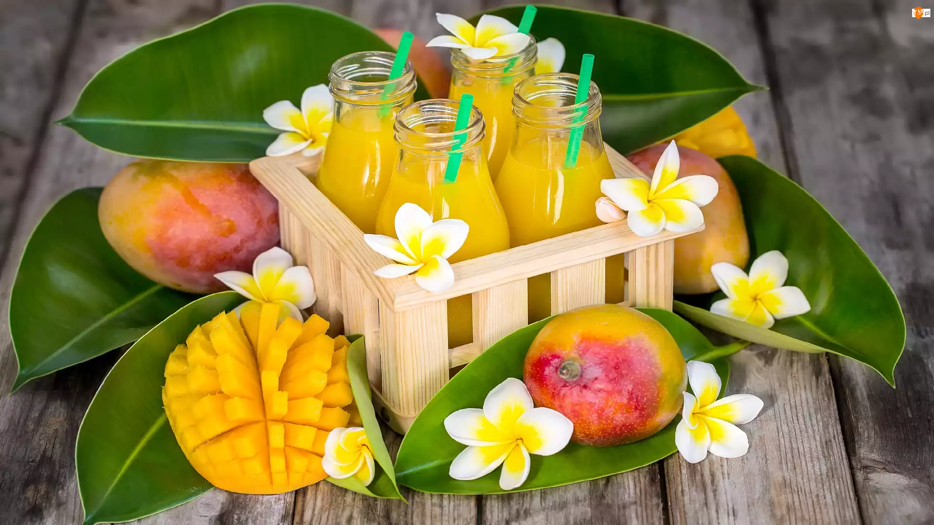 Listki, Kwiatki, Butelki, Mango, Soki, Skrzynka, Plumerie