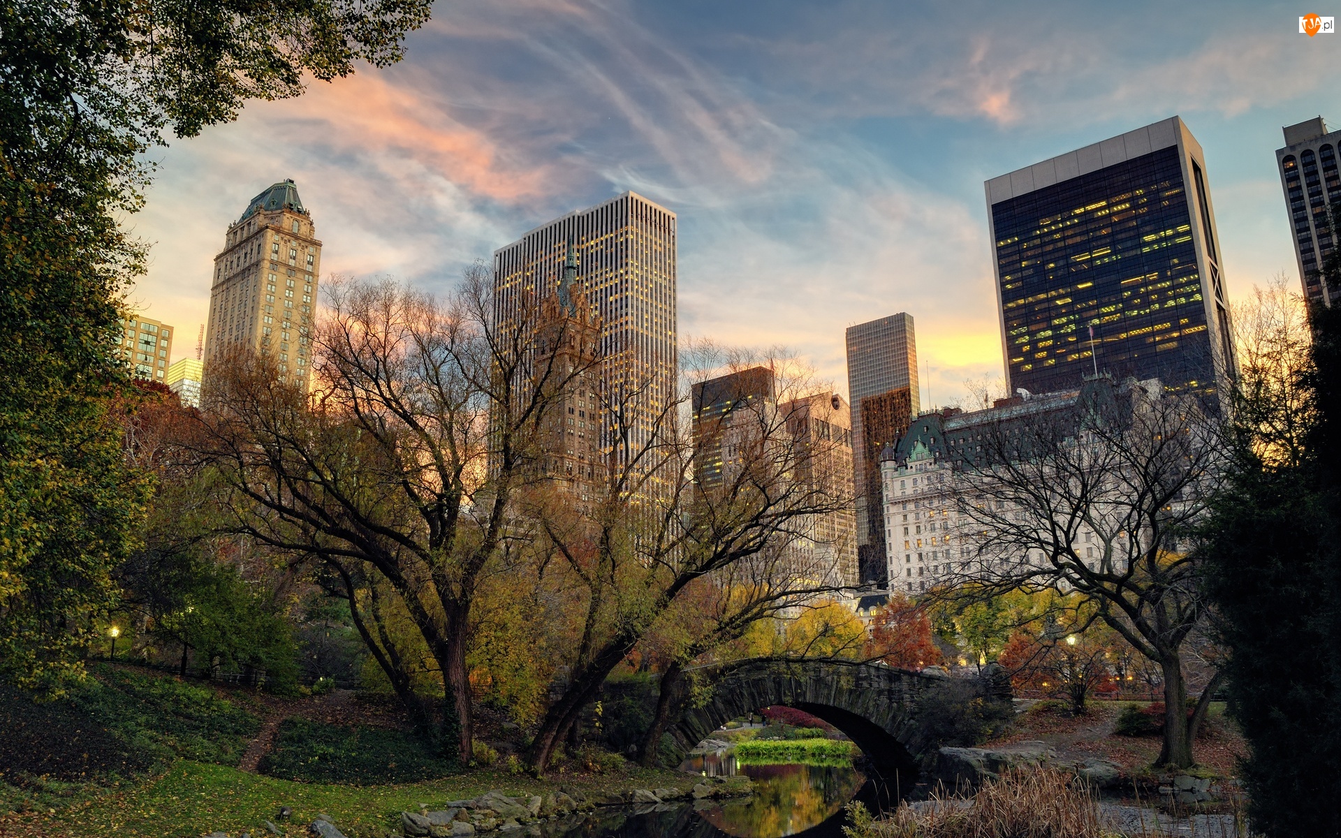 Cedntral, Park, Rzeka, Nowy, Wieżowce, Jork, Most, Manhattan
