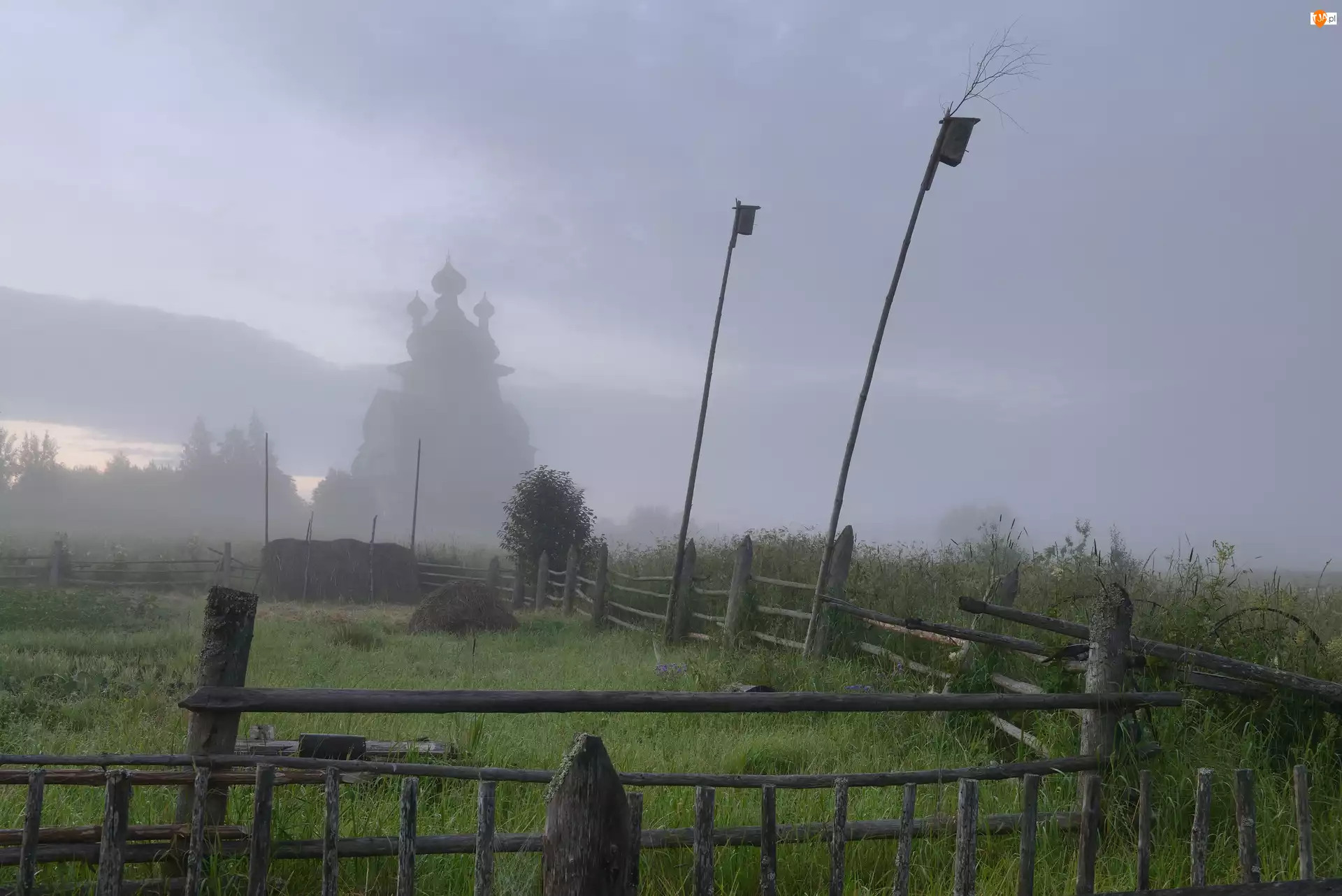 Ogrodzenie, Karmniki, Cerkiew, Mgła, Pale