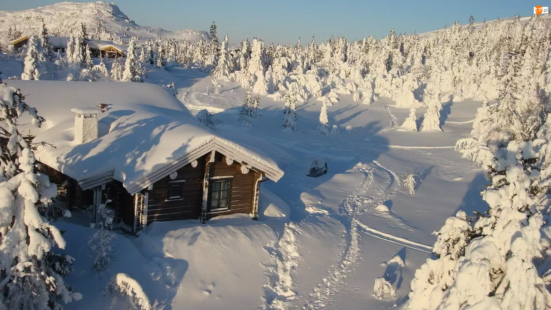 Chatka, Góry, Śnieżne, Zaspy, Drewniana
