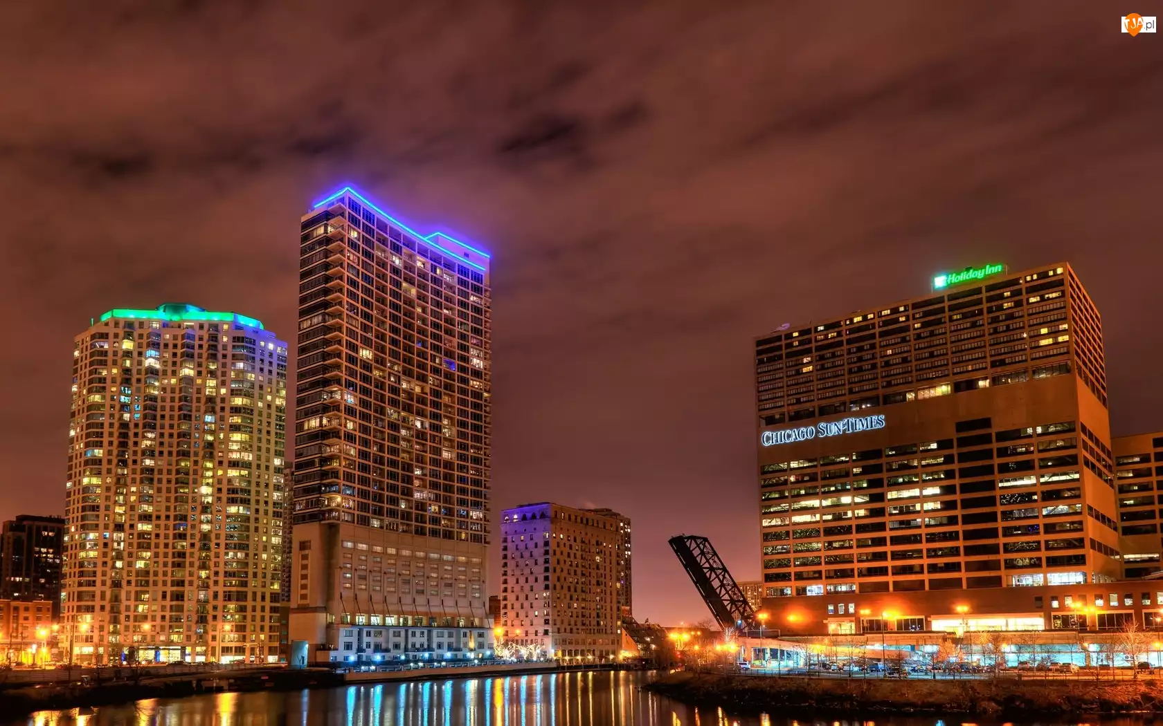 Chicago, Światła, Wieżowce, Noc