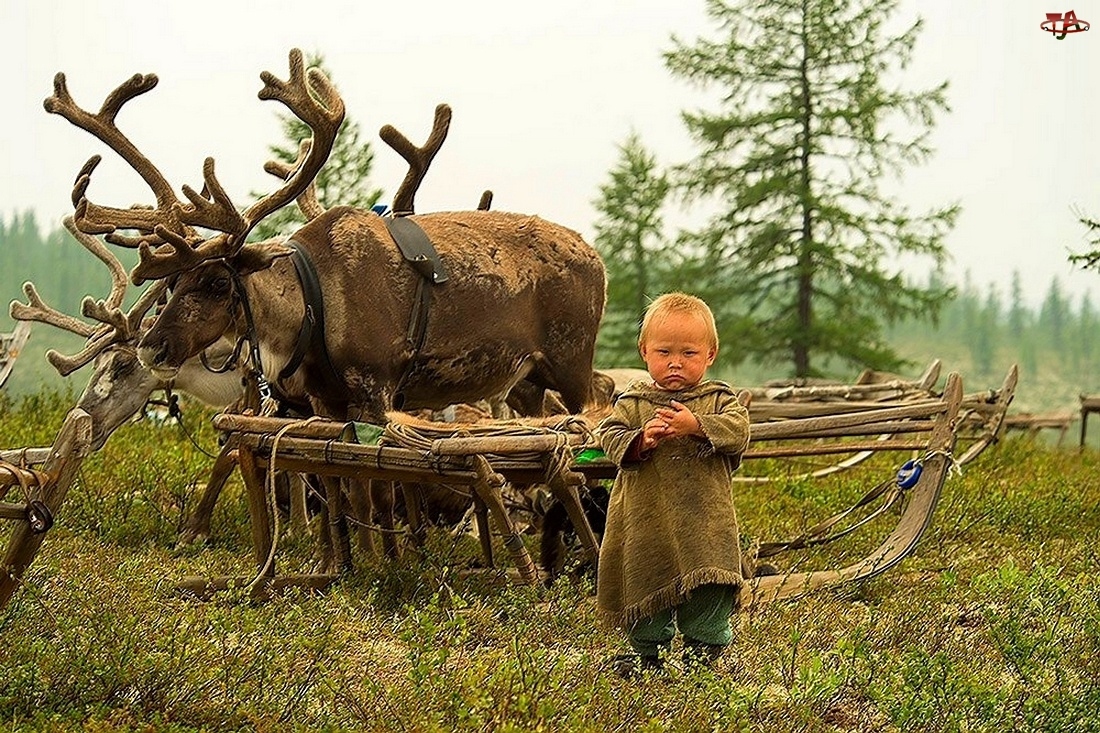 Chłopiec, Łąka, Renifery, Las