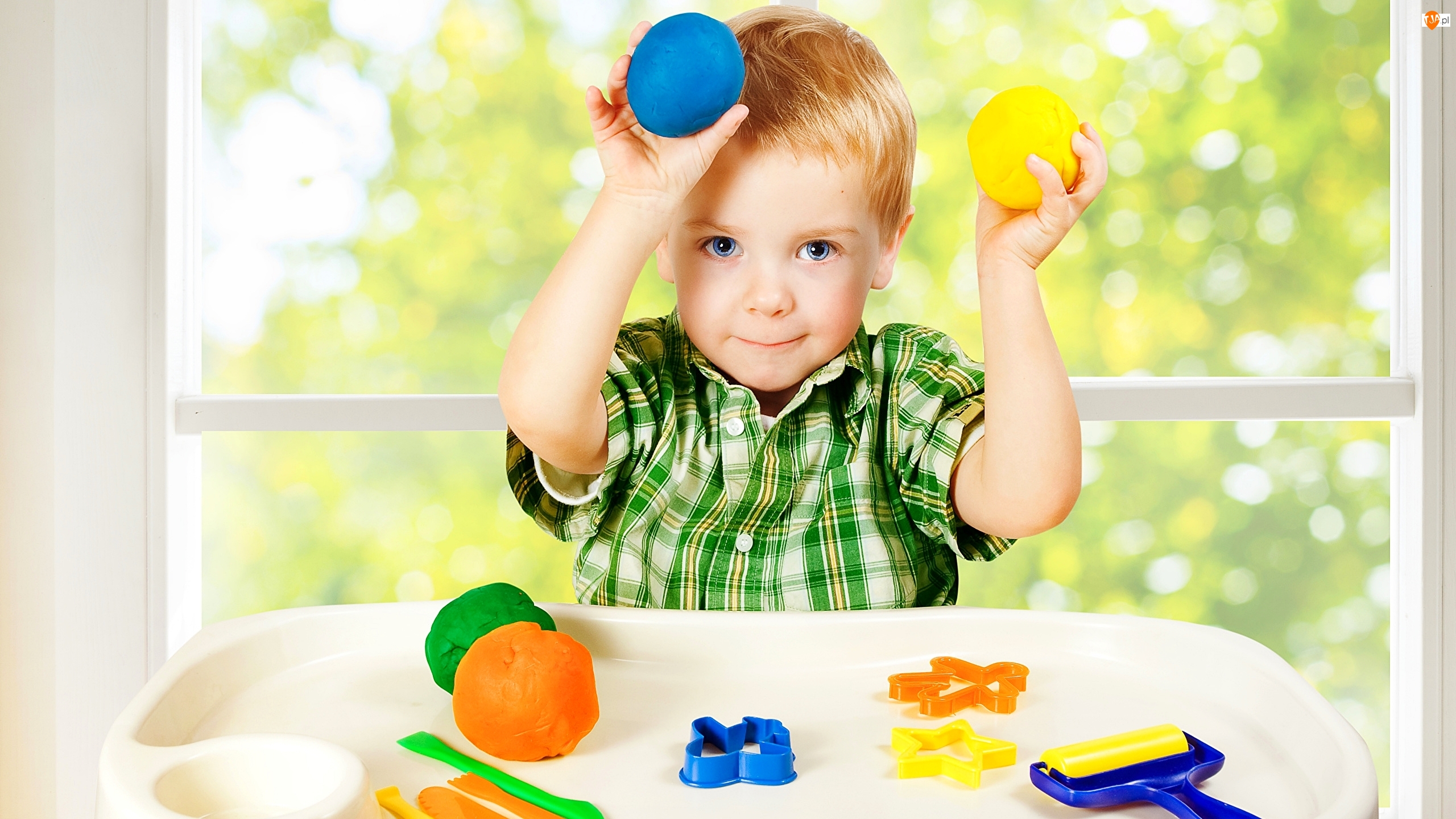 Zabawa, Chłopiec, Okno, Kulki, Foremki, Stolik, Ciastolina, Dziecko, Kolorowe