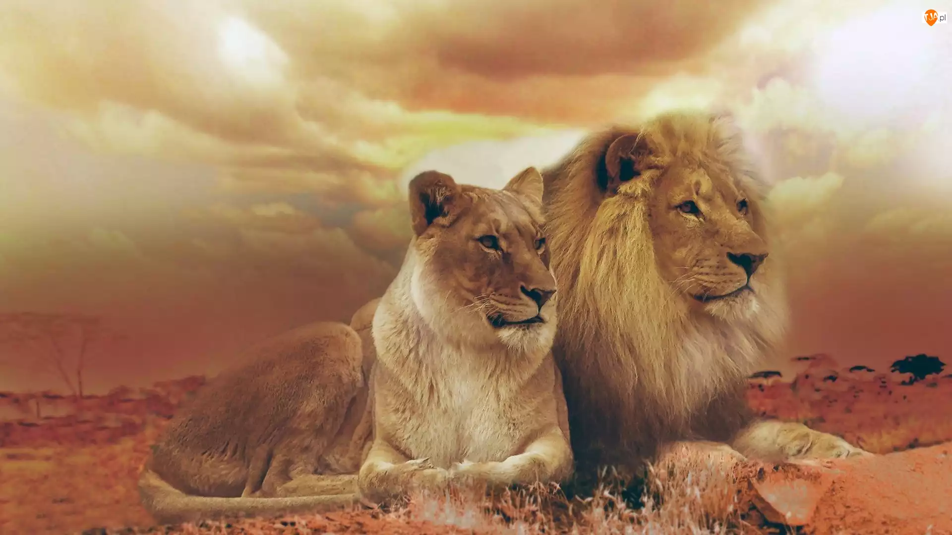 Chmury, Dwa, Parka, Lwy, Sawanna