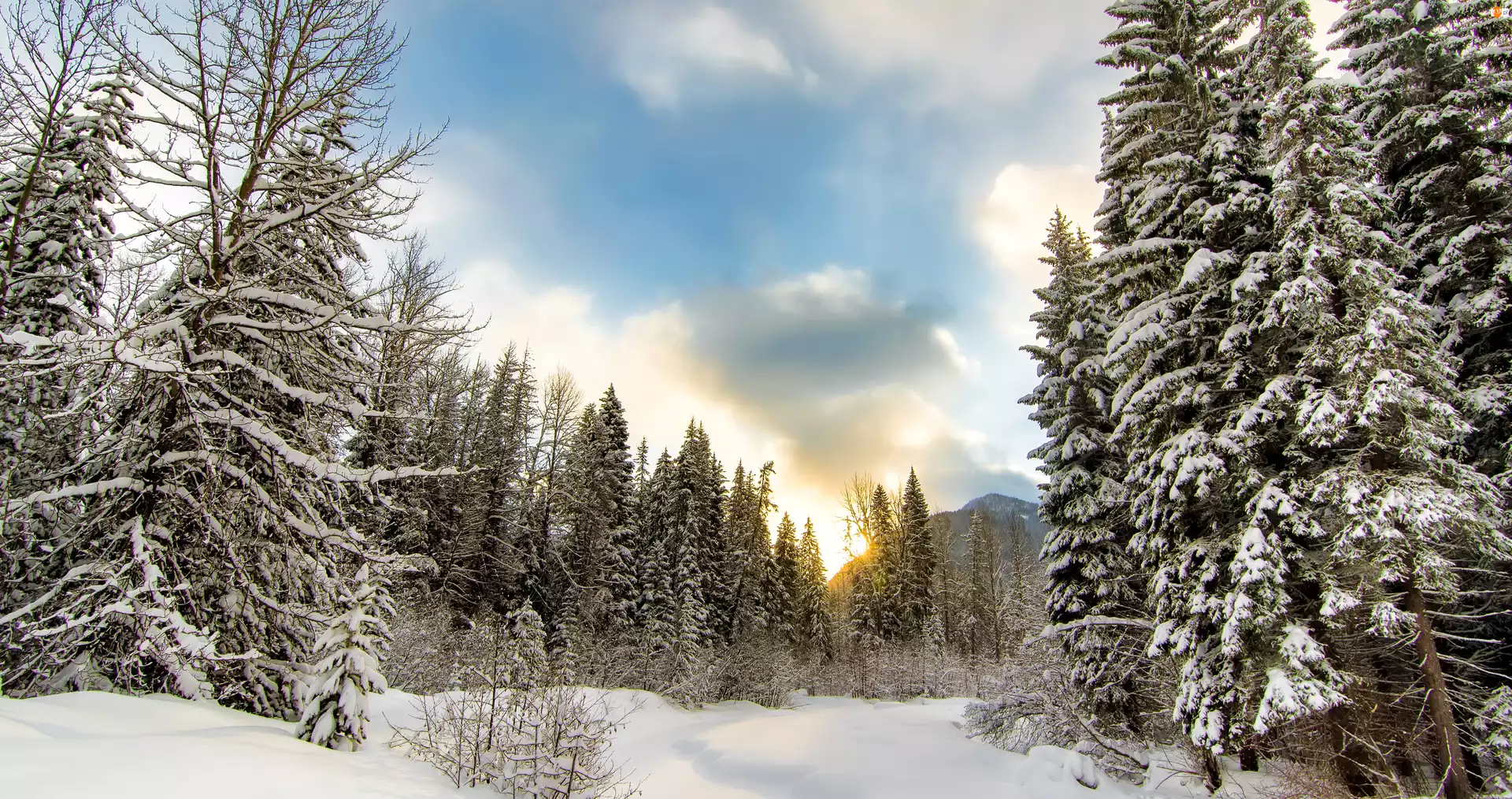 Chmury, Las, Śnieg, Drzewa, Niebo