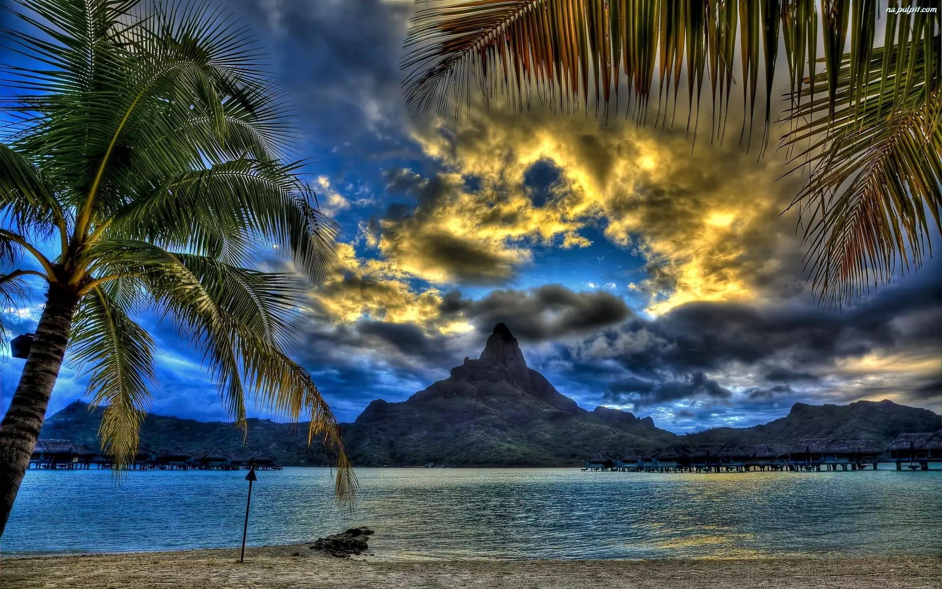 Chmury, Morze, Góry, Palmy
