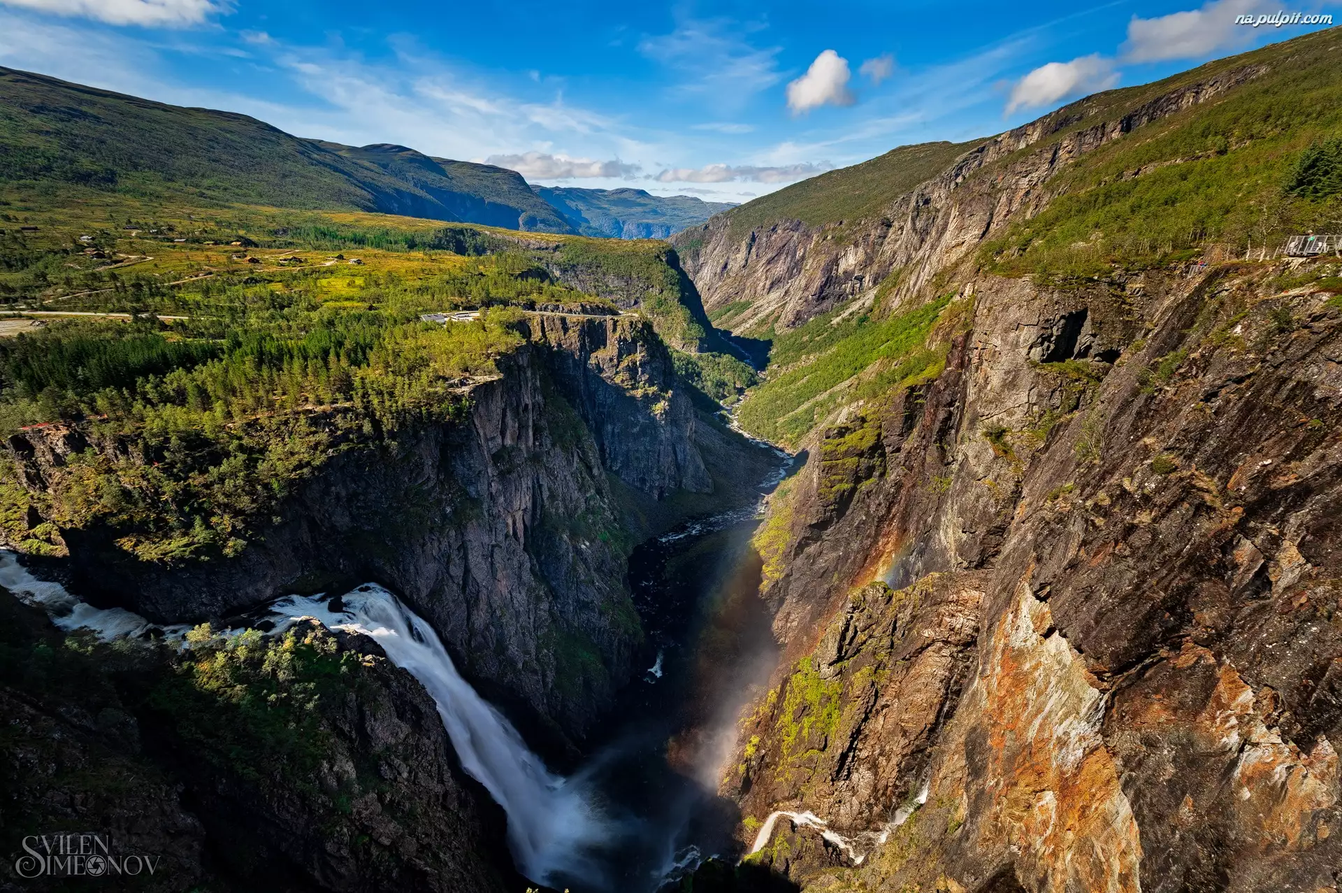 Rzeka, Góry, Skały, Norwegia, Wodospad Voringsfossen, Region Hordaland