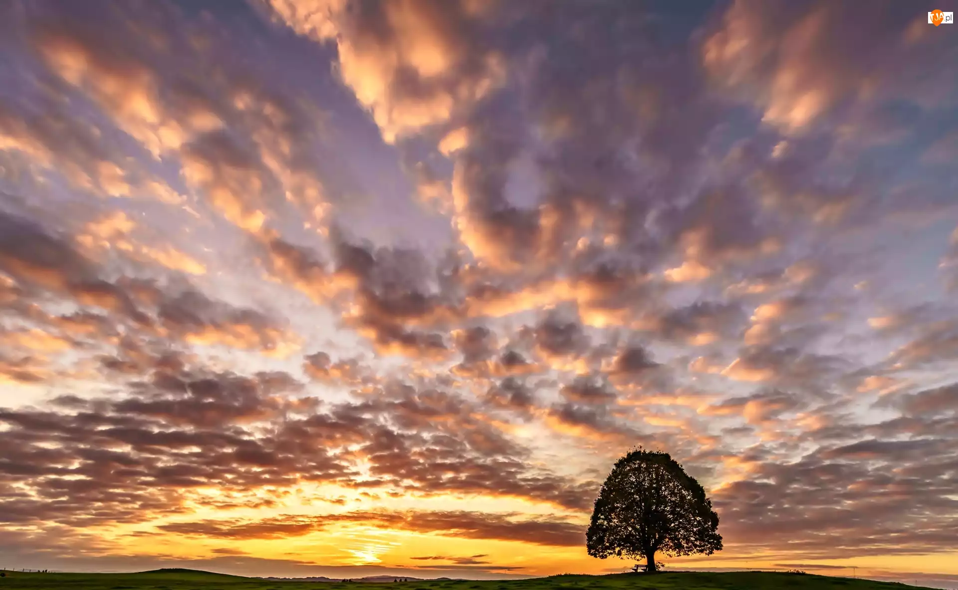 Chmury, Niebo, Obłoki, Wschód Slońca, Drzewo