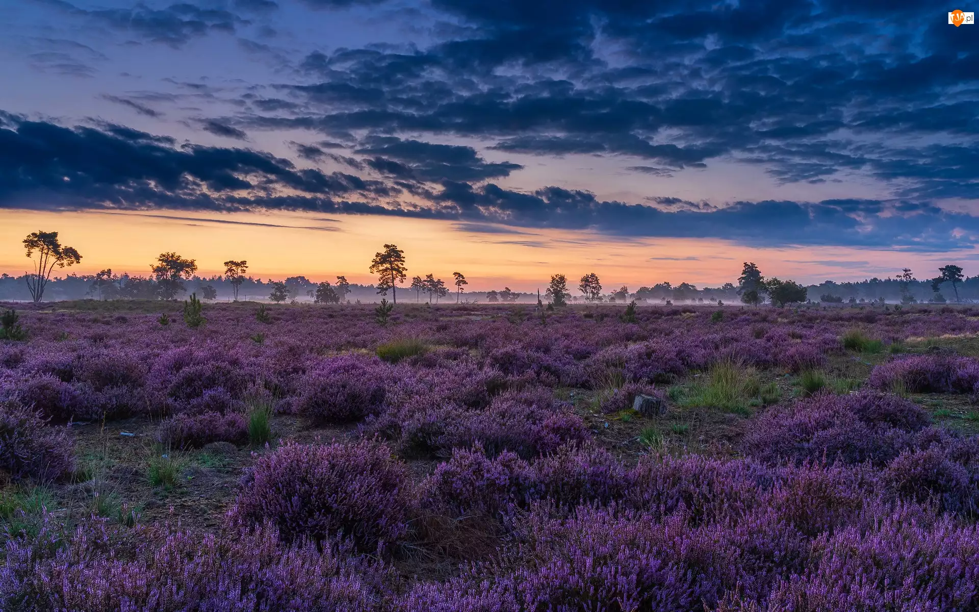 Chmury, Wrzosowisko, Wrzosy, Drzewa