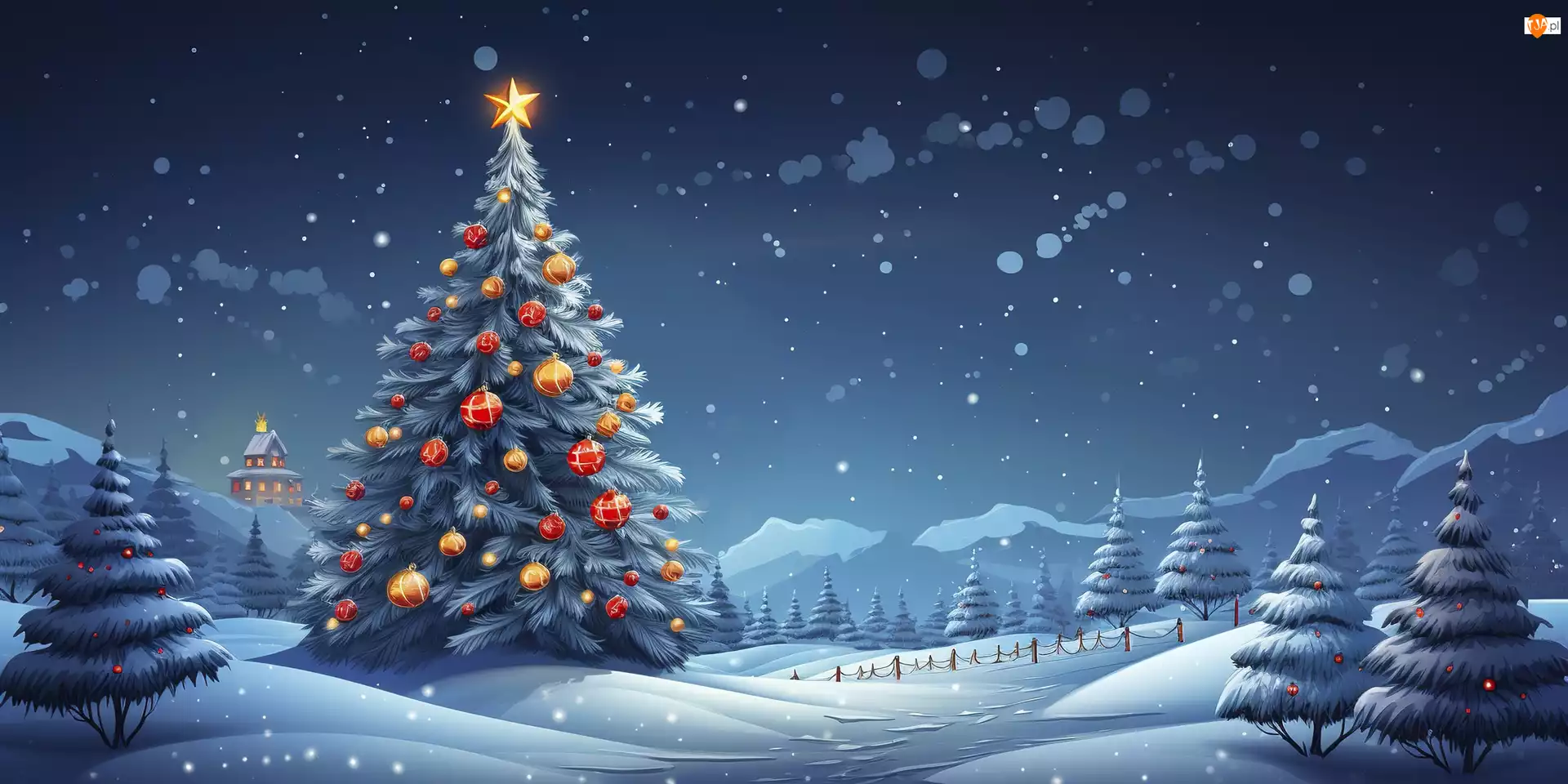 Choinka, Grafika, Zima, Boże Narodzenie, Dom
