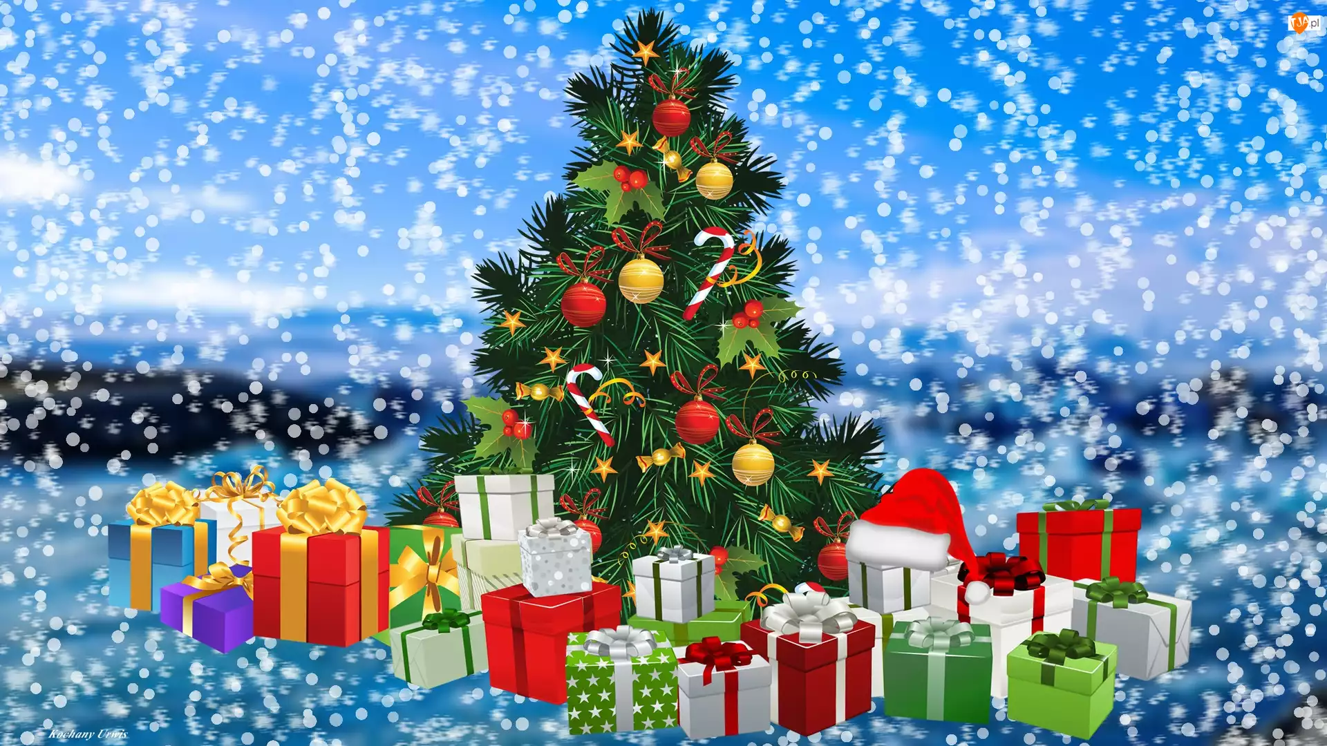 Grafika 2D, Boże Narodzenie, Choinka, Prezenty