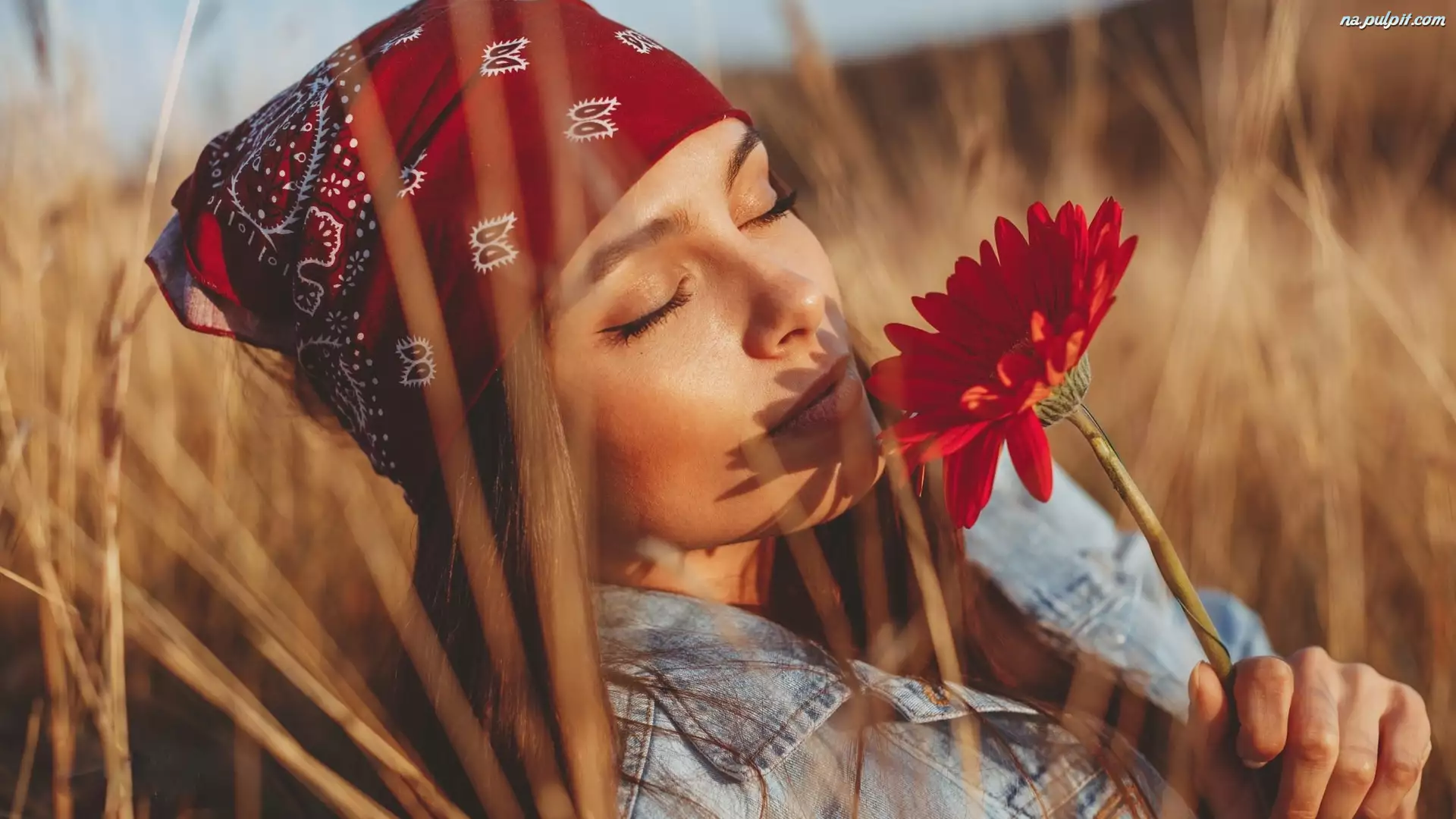 Chustka, Gerbera, Czerwona, Dziewczyna, Kwiat