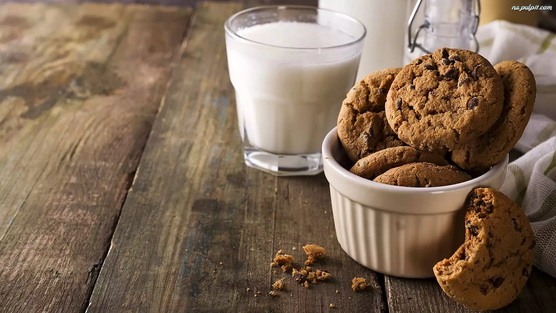 Ciasteczka, Kruche, Mleko, Deski, Czekolada, Szklanka
